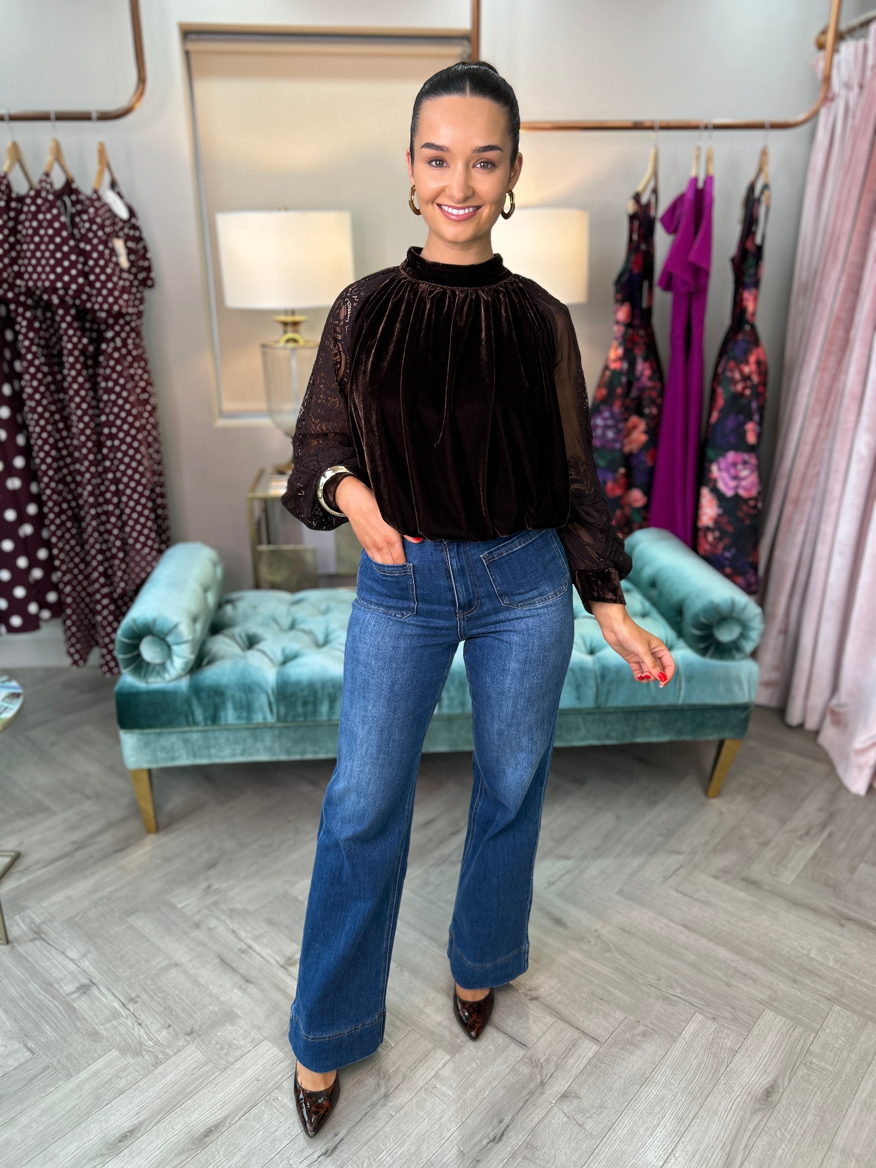 Perfect for dressing up your favorite denim or pairing with tailored trousers, the Choco Velvet Top transitions effortlessly from day to evening. Luxe, graceful, and endlessly chic — it’s the statement piece your autumn wardrobe has been waiting for.