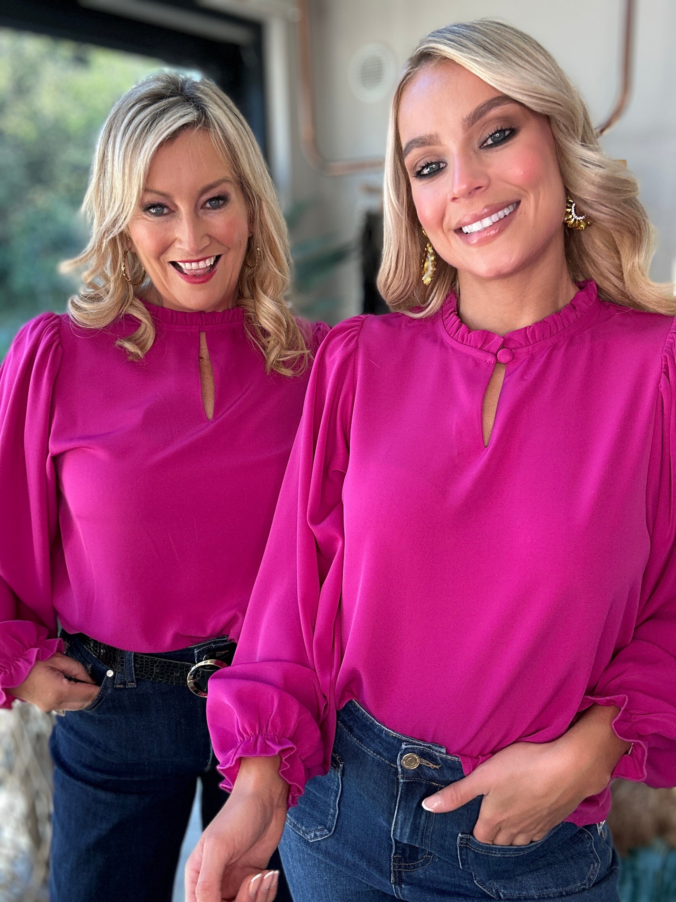 Bold, feminine, and versatile — this chic blouse is designed to elevate any outfit with ease. The vibrant hue brings instant impact, while the flattering silhouette and gathered details at the neckline and cuffs add a touch of elegance. Perfect for pairing with jeans for a relaxed daytime look or styling with tailored trousers for an evening out, it’s a must-have piece for effortless day-to-night dressing.