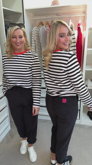 Say hello to effortless comfort with the Vonnie Trousers in soft black cord. Made from 100% cotton, these laid-back trousers are cut with a relaxed, slightly tapered leg and finished with an elasticated waist for that just-right fit. The soft corduroy texture gives them an elevated feel while keeping things casual. Dress them up with boots or pair with your favourite tee and trainers – Vonnie’s made for doing-it-all days.