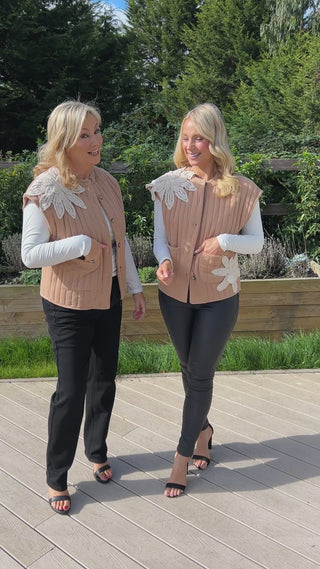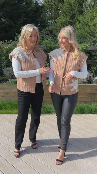 Layer up in style with the Fleur Gilet, a chic padded piece designed for both comfort and versatility. Featuring statement floral applique detailing and practical front pockets, it’s perfect for adding a touch of personality to your everyday looks. Available in classic black or warm camel, this gilet is easy to style over knitwear, blouses, or long-sleeve tops for a polished yet relaxed finish.