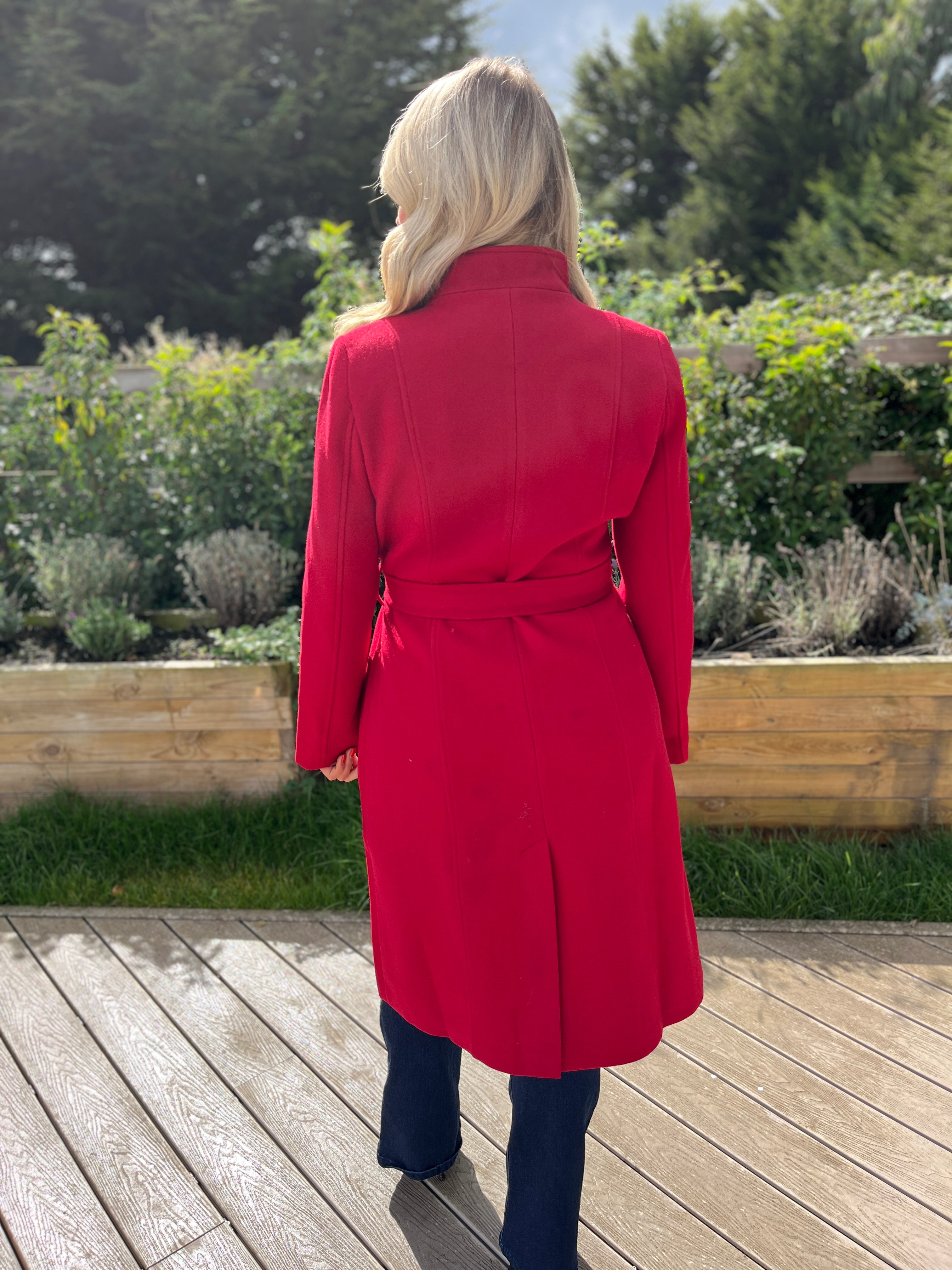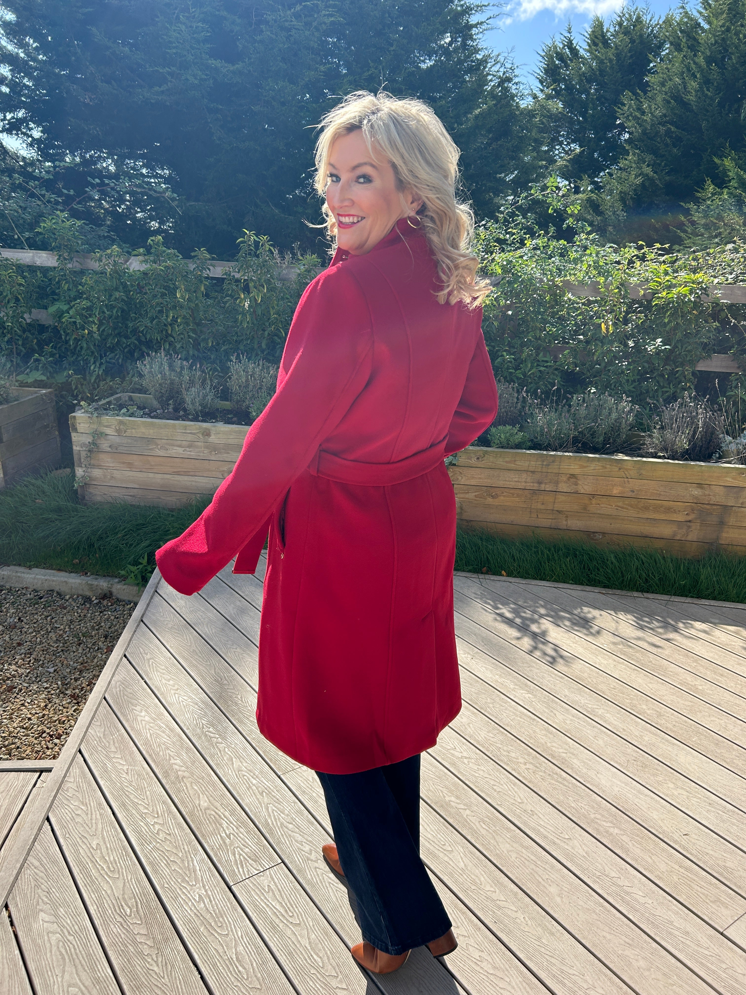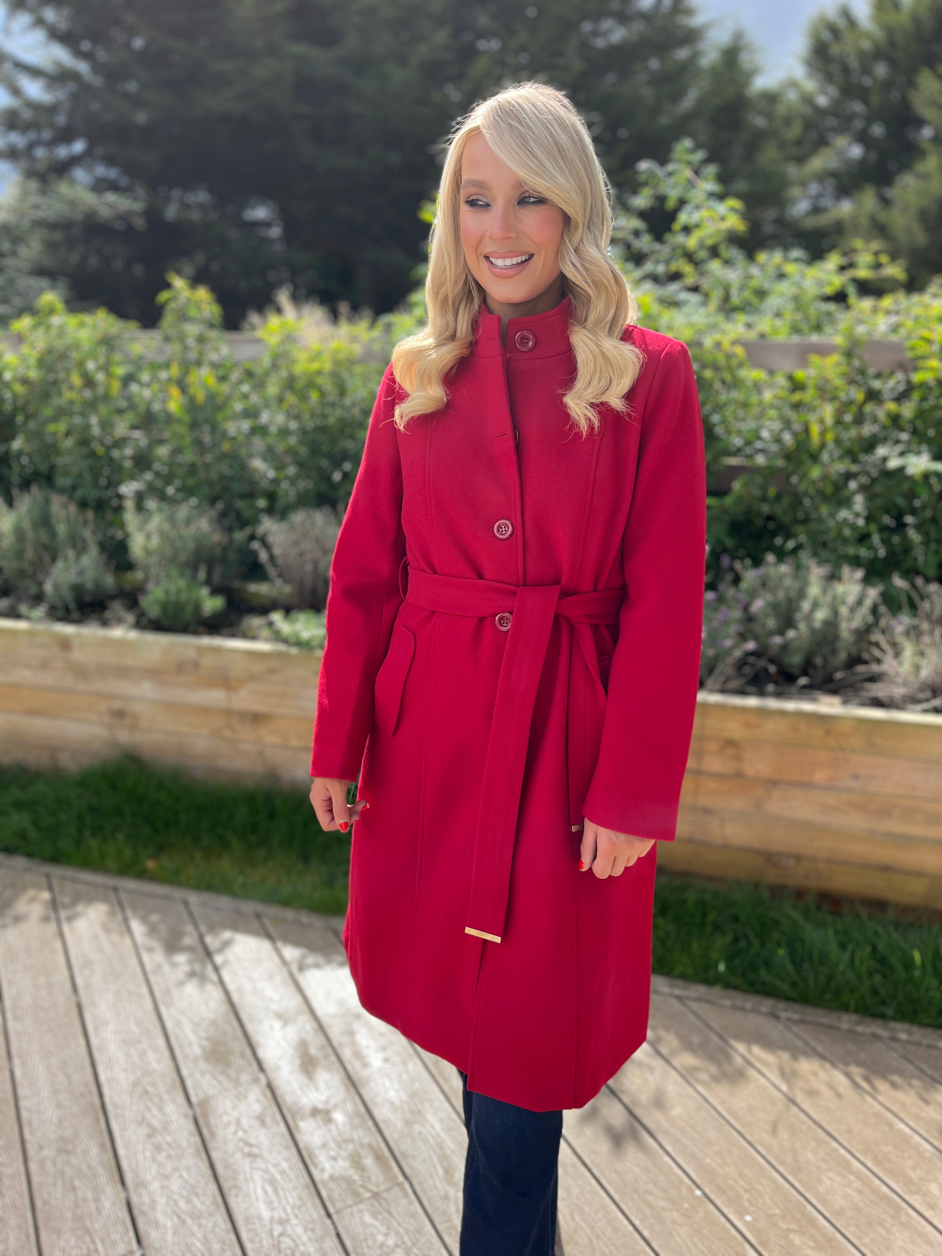 The Amanda Coat is the perfect blend of sophistication and comfort. Designed with a tailored fit to flatter every silhouette, it features a chic belted waist and classic button fastening for a timeless finish. The vibrant red hue adds a bold pop of personality to your wardrobe, effortlessly elevating both casual looks and dressier ensembles. Crafted from a soft, cozy fabric, this coat ensures you stay warm without compromising on style.