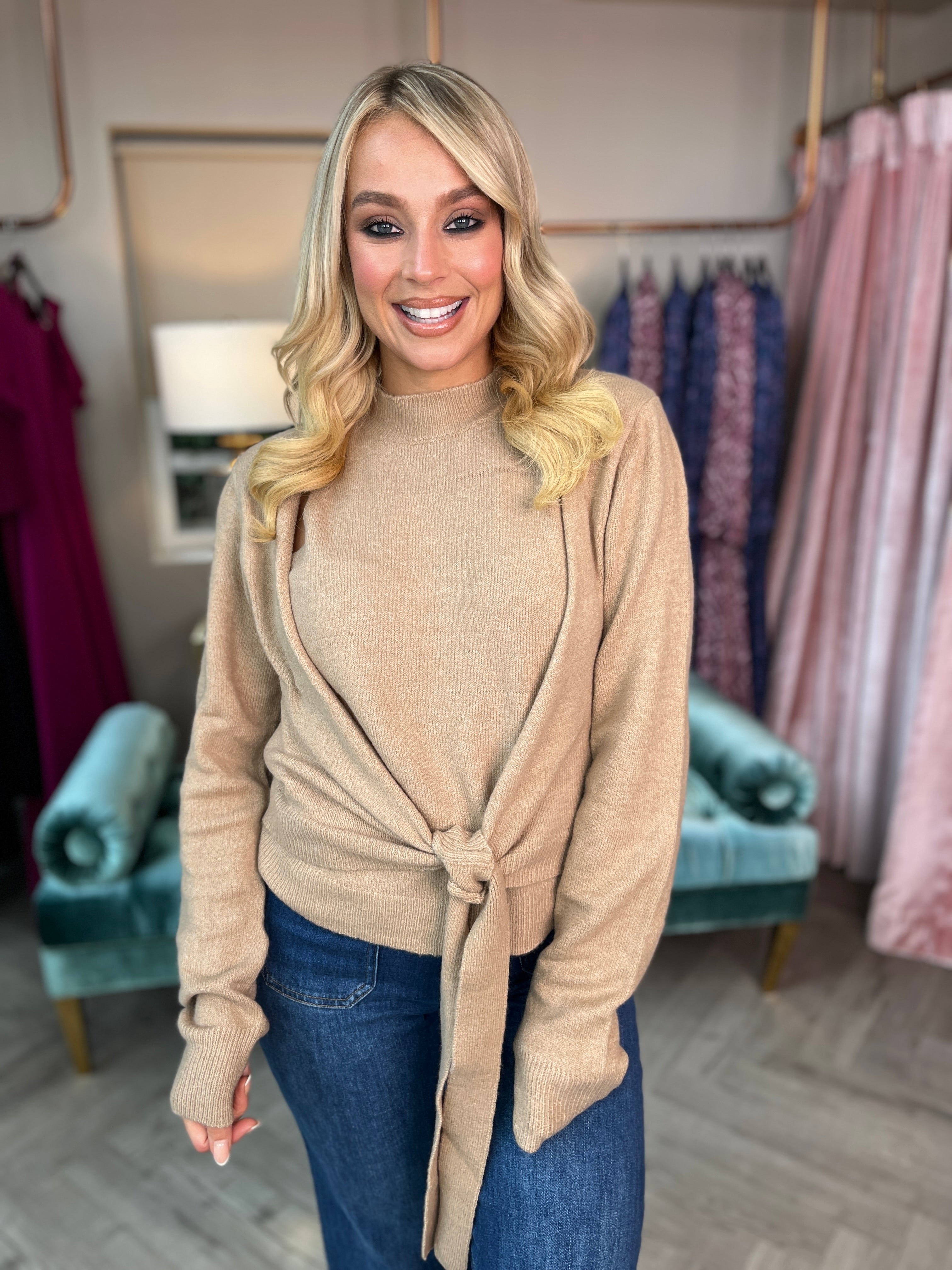 Stay cozy and chic with this 2-in-1 knit top — the ultimate wardrobe hero for autumn/winter layering. Designed with a soft tie-waist cardigan and an attached mock neck racer top, it gives you that effortless layered look without the fuss. Pair it with jeans and chunky boots for a cute off-duty vibe or dress it up with tailored trousers and heels.