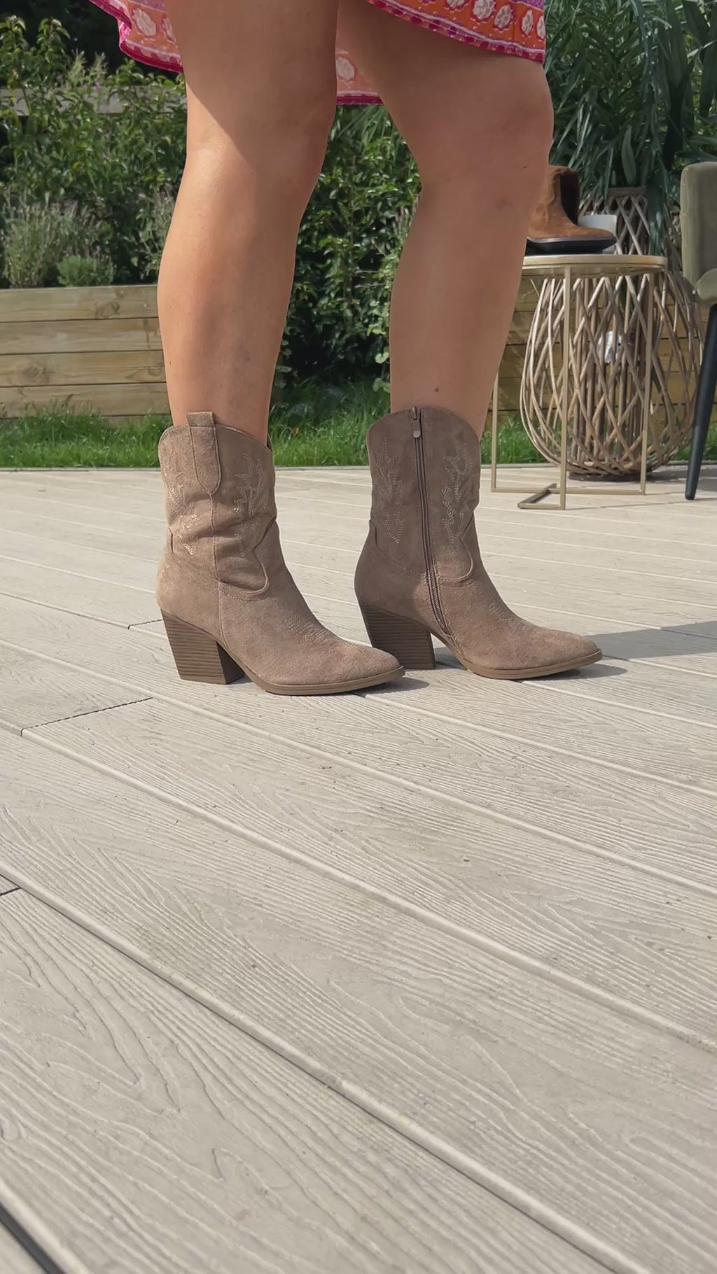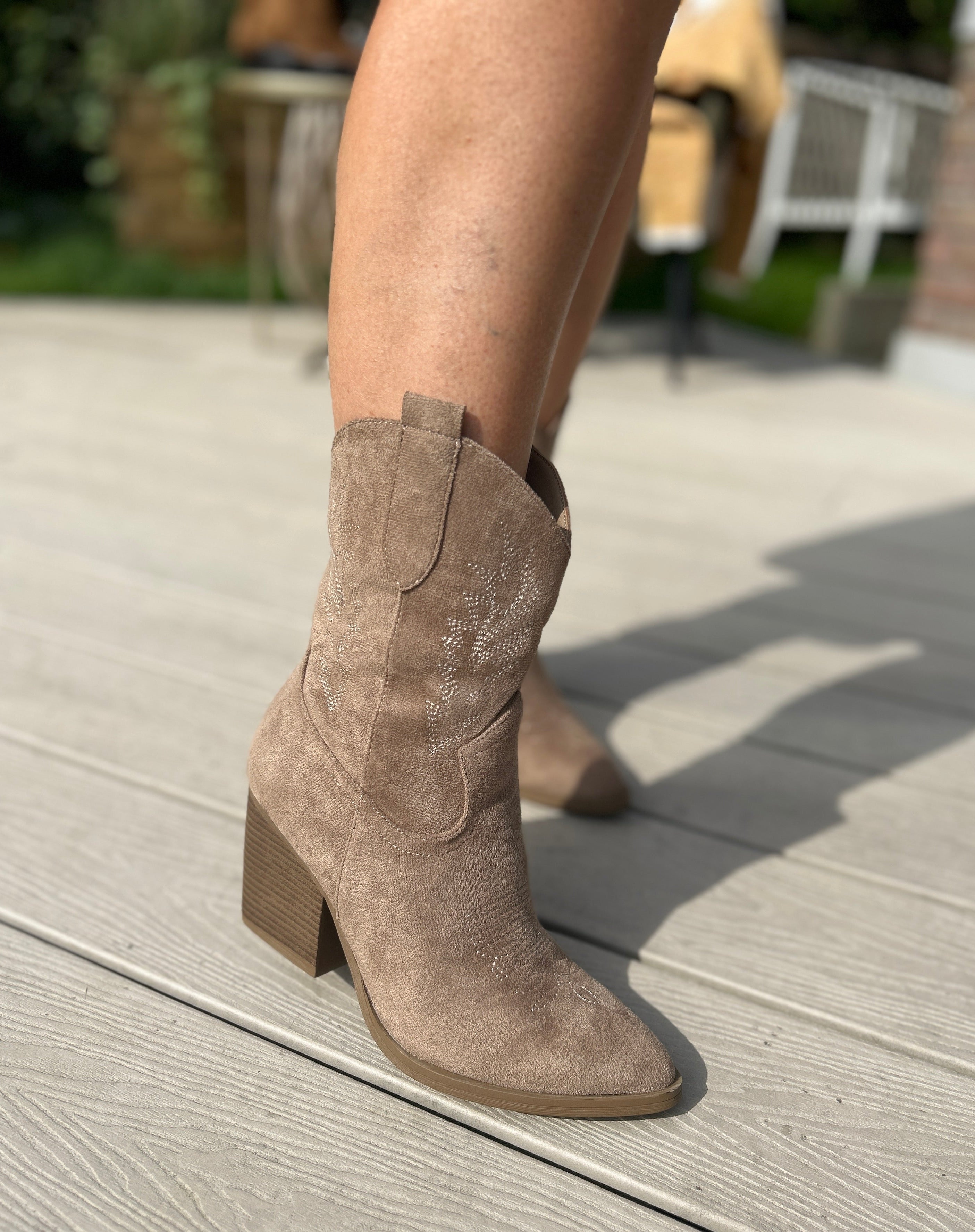 Step into effortless Western style with the Taylor Taupe Boots – the perfect blend of everyday comfort and cowgirl edge. Crafted in a soft faux suede with subtle stitched detailing, these boots feature a classic Western silhouette with a modern block heel that adds just the right amount of lift. The neutral taupe shade makes them endlessly versatile – pair them with floaty dresses, denim, or even tailored pieces for a chic twist