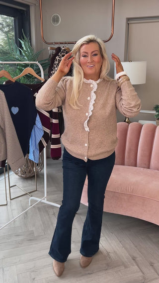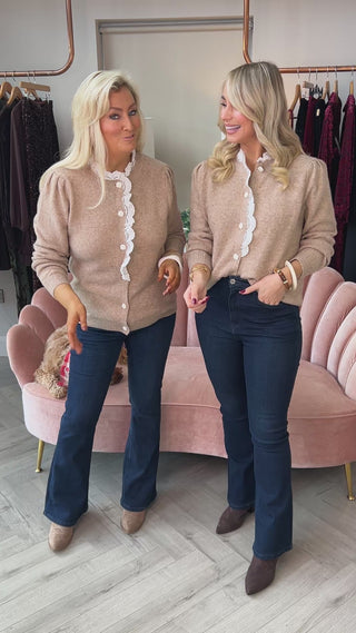 Delicate, feminine, and effortlessly chic — the Bethany Knit is a piece that captures subtle elegance in every detail. Crafted from a fine, comfortable knit, it features a contrasting white lace trim and flower-shaped buttons for a touch of vintage-inspired charm. The slightly puffed shoulders add a soft, graceful silhouette, making it perfect for pairing with jeans or a flowing skirt.
