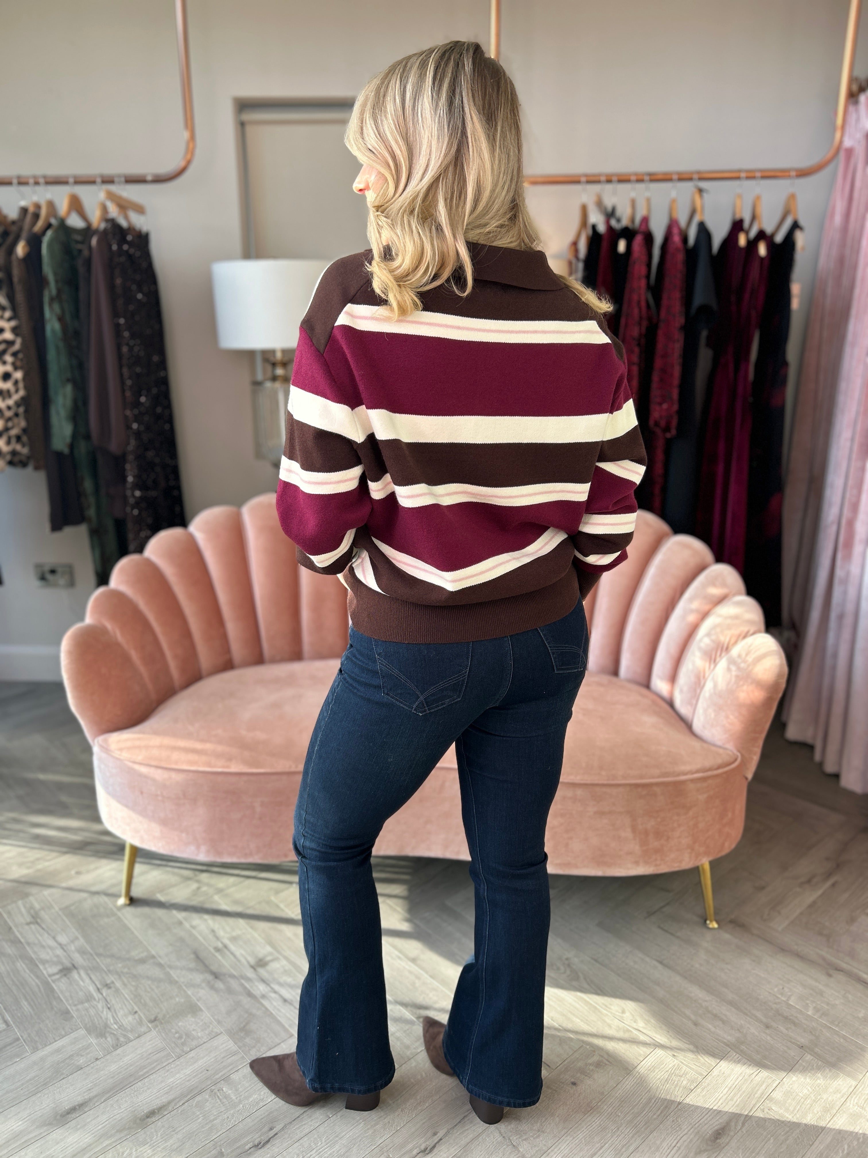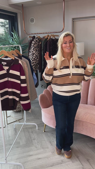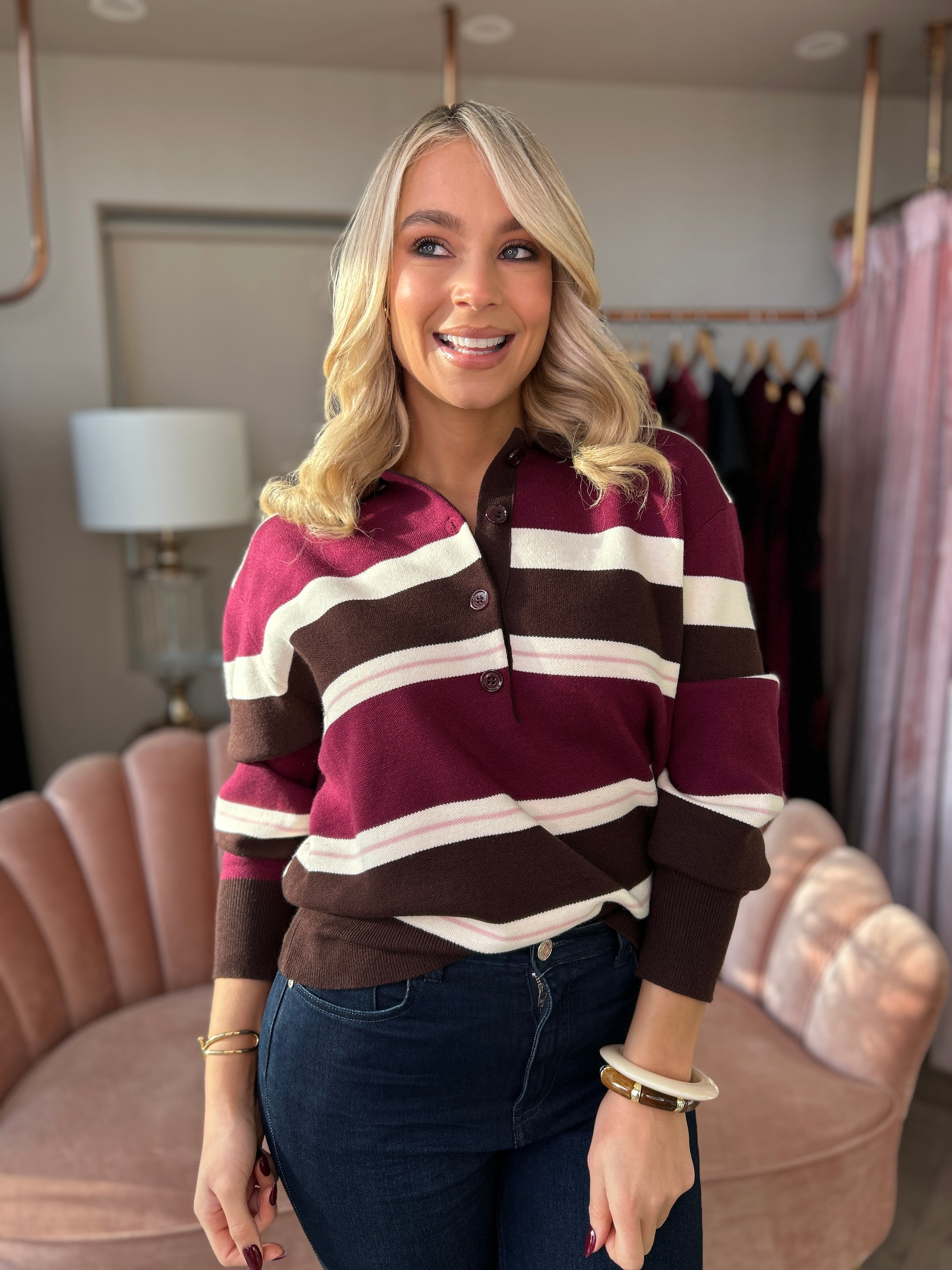 Meet the Kelly Knit — a timeless striped favourite designed for comfort and versatility. Crafted from a fine, lightweight knit, it drapes beautifully while keeping you cosy through the seasons. The classic stripe pattern and button neckline give it a relaxed yet refined feel, perfect for both casual days and smart-casual moments.