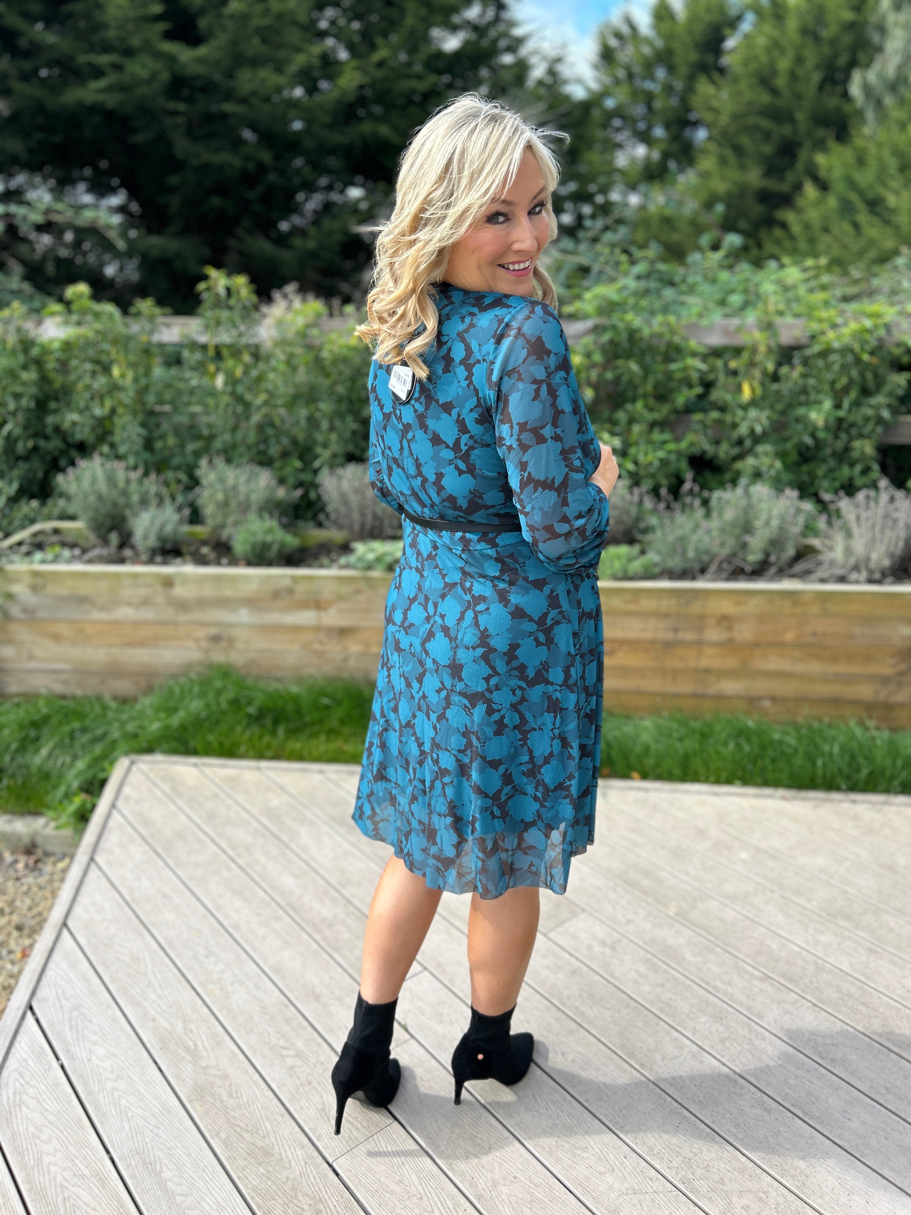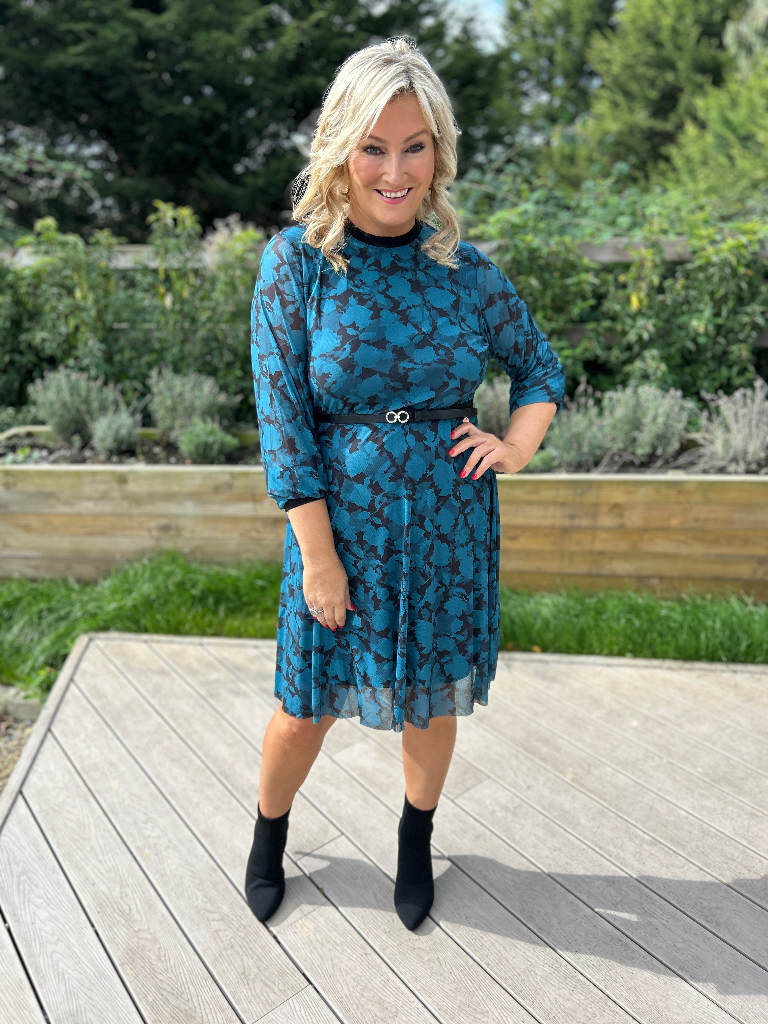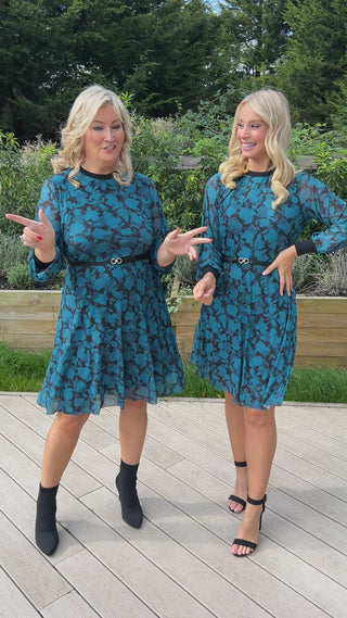 Effortless and versatile, the Genie Dress is designed to take you from day to night with ease. Crafted with a fine mesh overlay and soft lining, it offers a lightweight yet polished finish. The pull-over style means no zips and no fuss, while the included belt with a silver circle buckle cinches the waist for a flattering silhouette. Finished with ribbed cuffs for a modern touch, this dress can be styled up with heels or kept casual with boots.