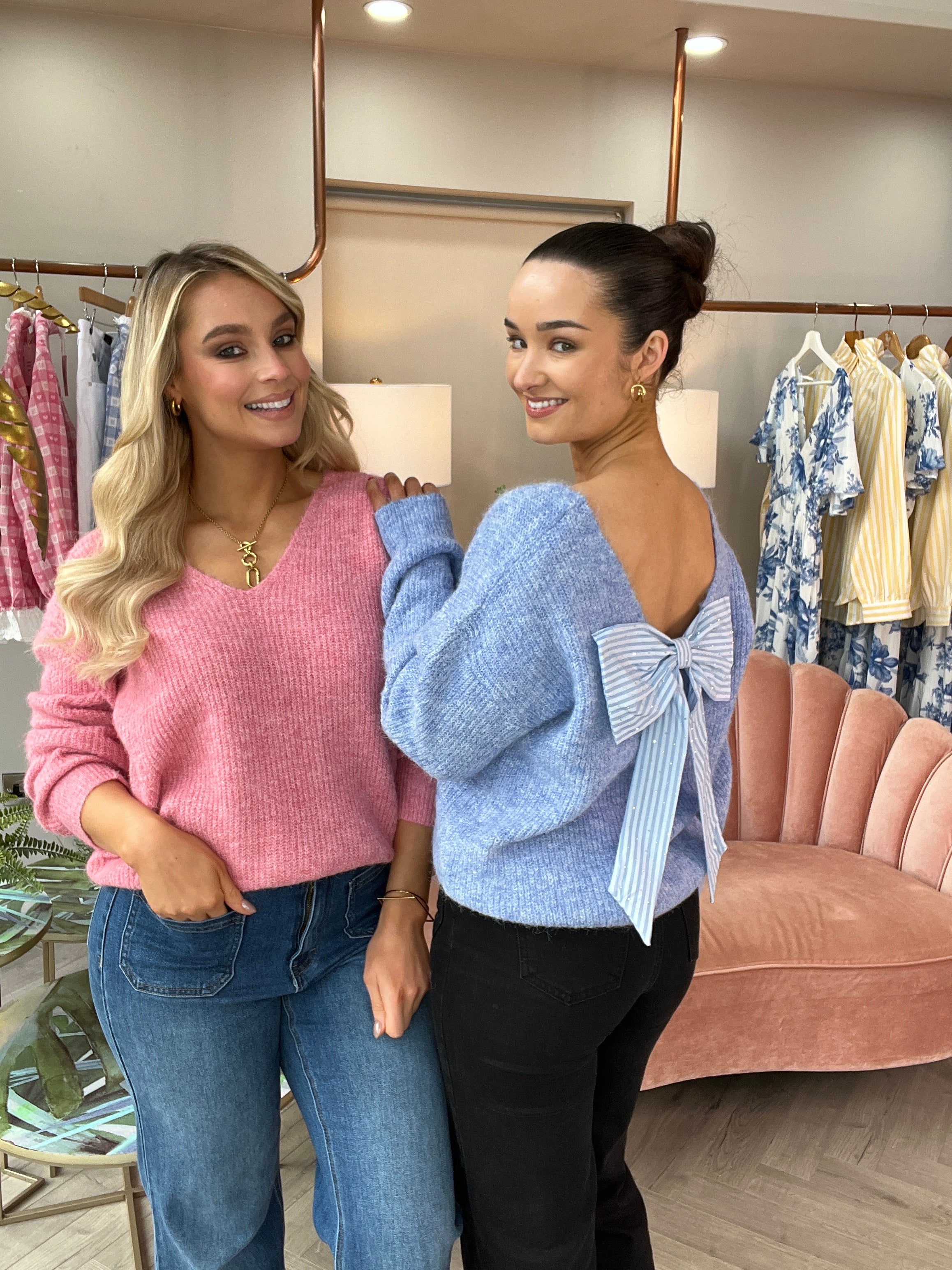 The Belle Pink Bow Knit is a a piece that effortlessly combines comfort with chic style. Crafted from a soft, luxurious knit in a captivating shade of blue, this jumper is your new go-to for wrapping up in style. The standout feature is the stunning bow detail on the back, adding a unique touch of elegance and femininity to your look. It's not just a jumper; it's a statement of fashion and grace.