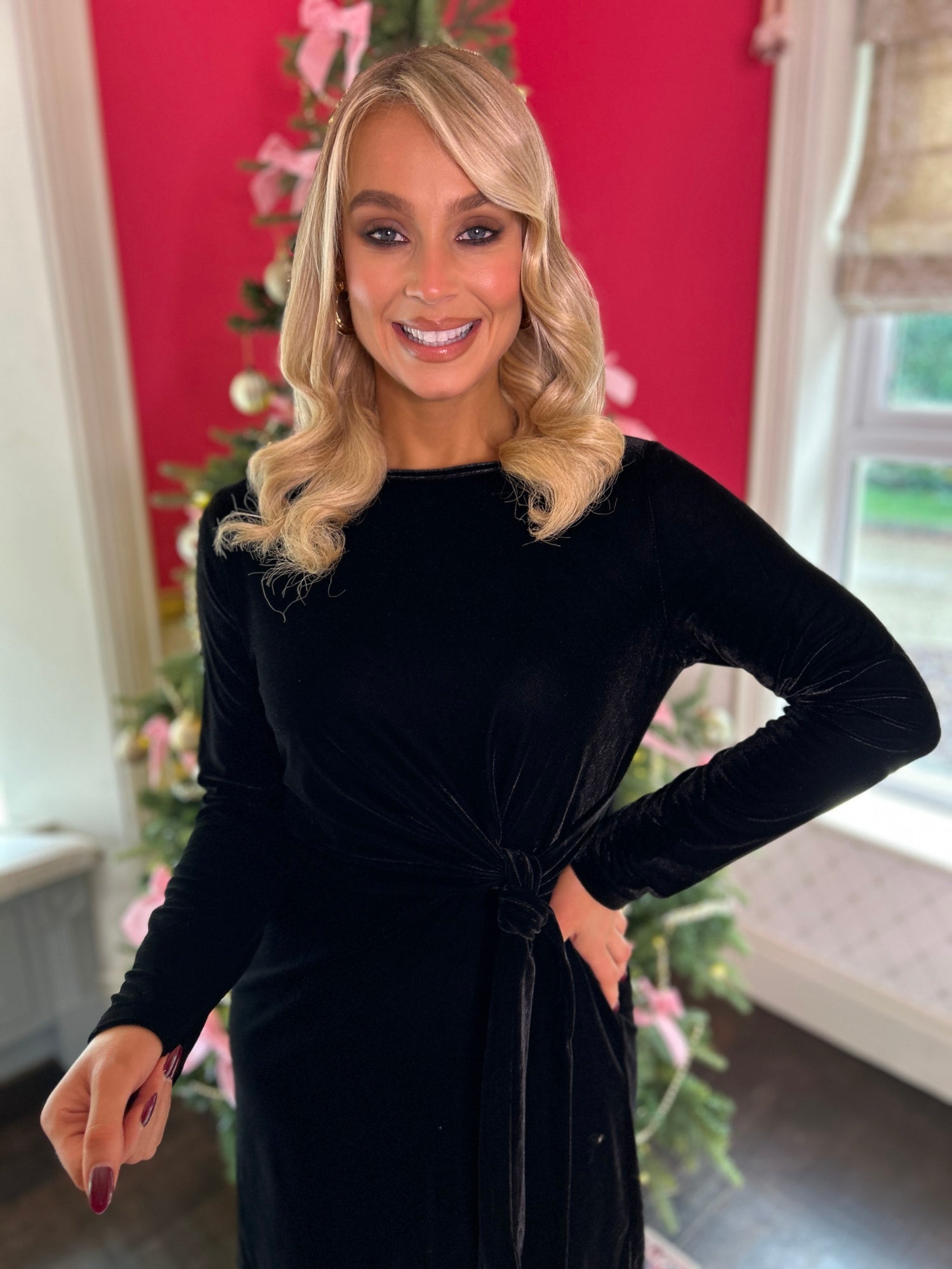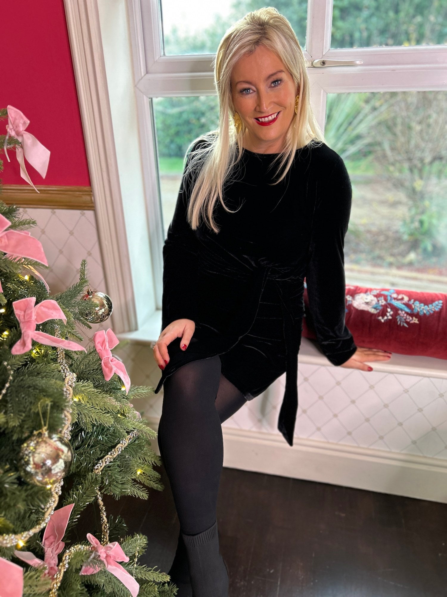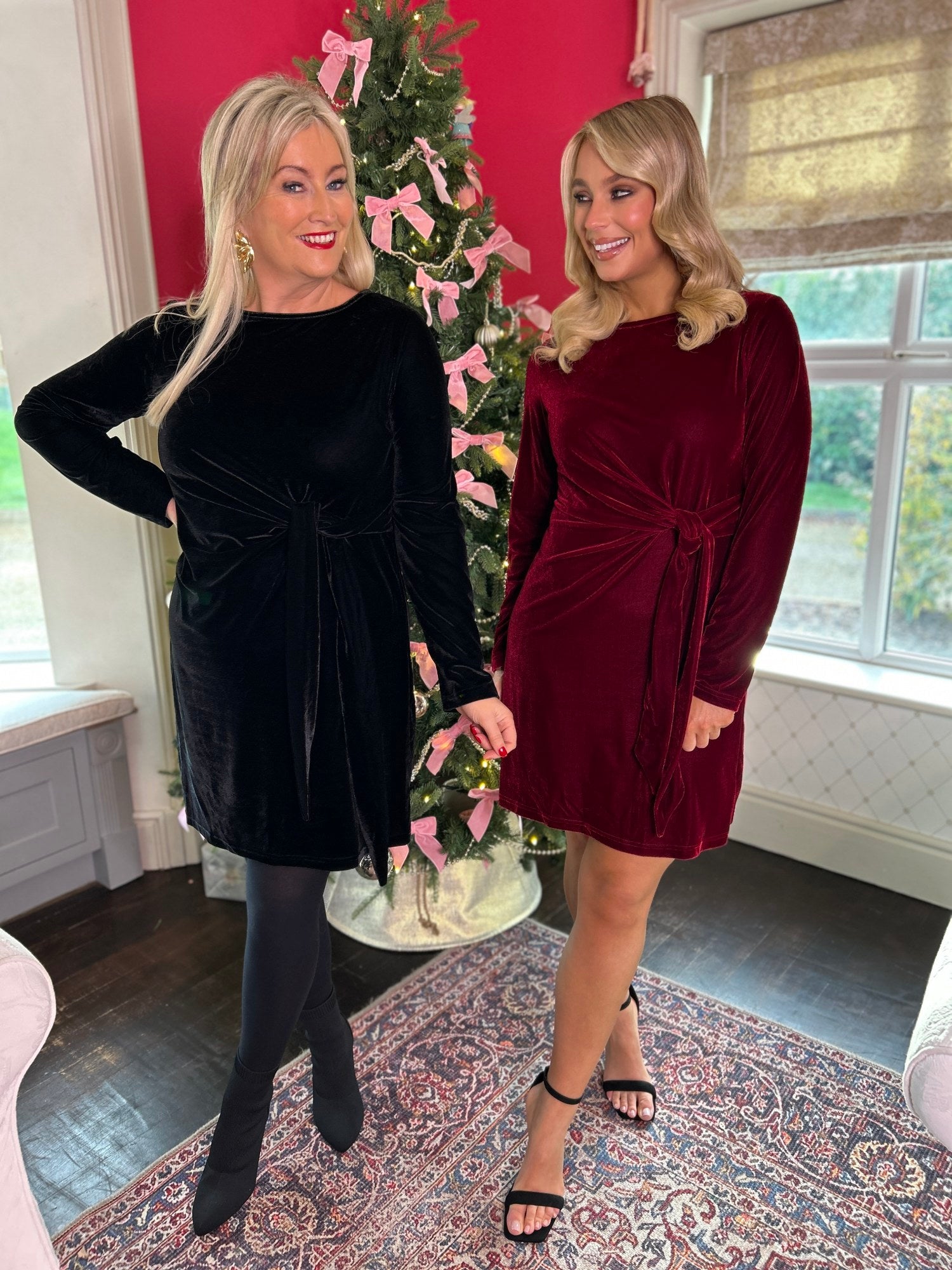 Introducing the Meg Black Velvet Dress, your go-to for an unforgettable Christmas Day ensemble priced at an amazing €49.00. Crafted from a luxurious, soft velvet fabric, this dress promises not only comfort but elegance with every wear. Its thoughtful design, featuring a chic side swag tie or bow, adds a unique touch to this classic piece, making it a standout in your festive wardrobe. Available in both a captivating black and a gorgeous luminous burgundy, this long-sleeved dress is the epitome of holiday sophistication.