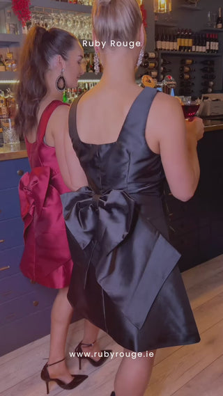 Elegant, feminine, and strikingly sophisticated — the Feyre Dress is a true showstopper. Crafted from lustrous fabric with a beautiful sheen, this structured mini dress features a flattering fit-and-flare silhouette and a statement oversized bow detail at the back for a touch of modern drama.