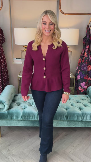 Effortlessly chic and endlessly wearable, the Philippa peplum knit is the perfect blend of comfort and polish. Crafted from a soft fine knit fabric, this flattering style features elegant gold button detailing and a gentle peplum silhouette that defines the waist beautifully.
