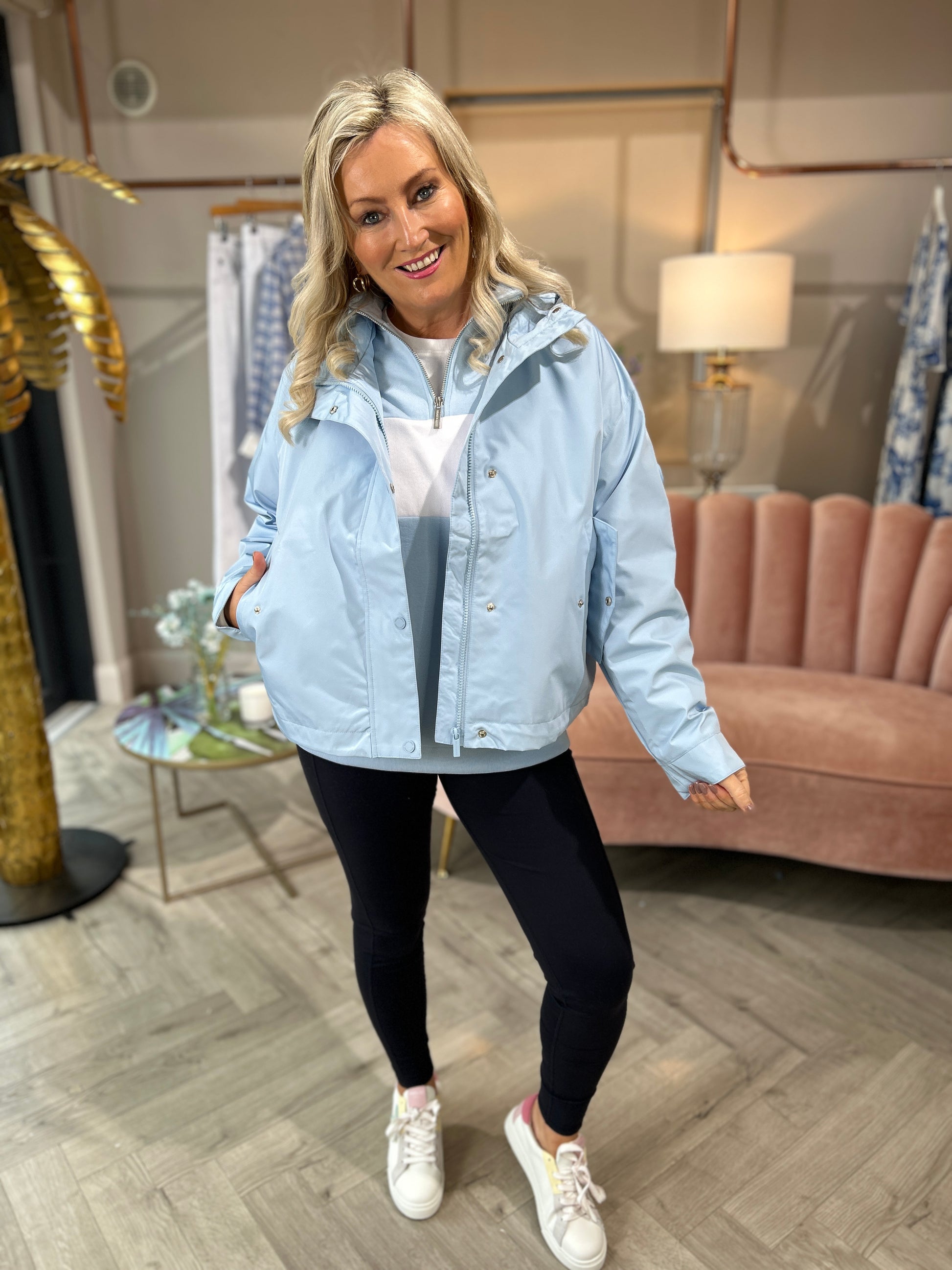 Introducing the Emma Jacket Sky, a stunning blend of practicality and contemporary styling priced at just €69.00. With its relaxed fit and soothing sky hue, this jacket is a must-have for anyone looking to stay polished while navigating the unpredictable transitional weather. Crafted for comfort and ease, it boasts a hooded neckline and convenient popper button fastening, making it the perfect layering piece for any outfit.