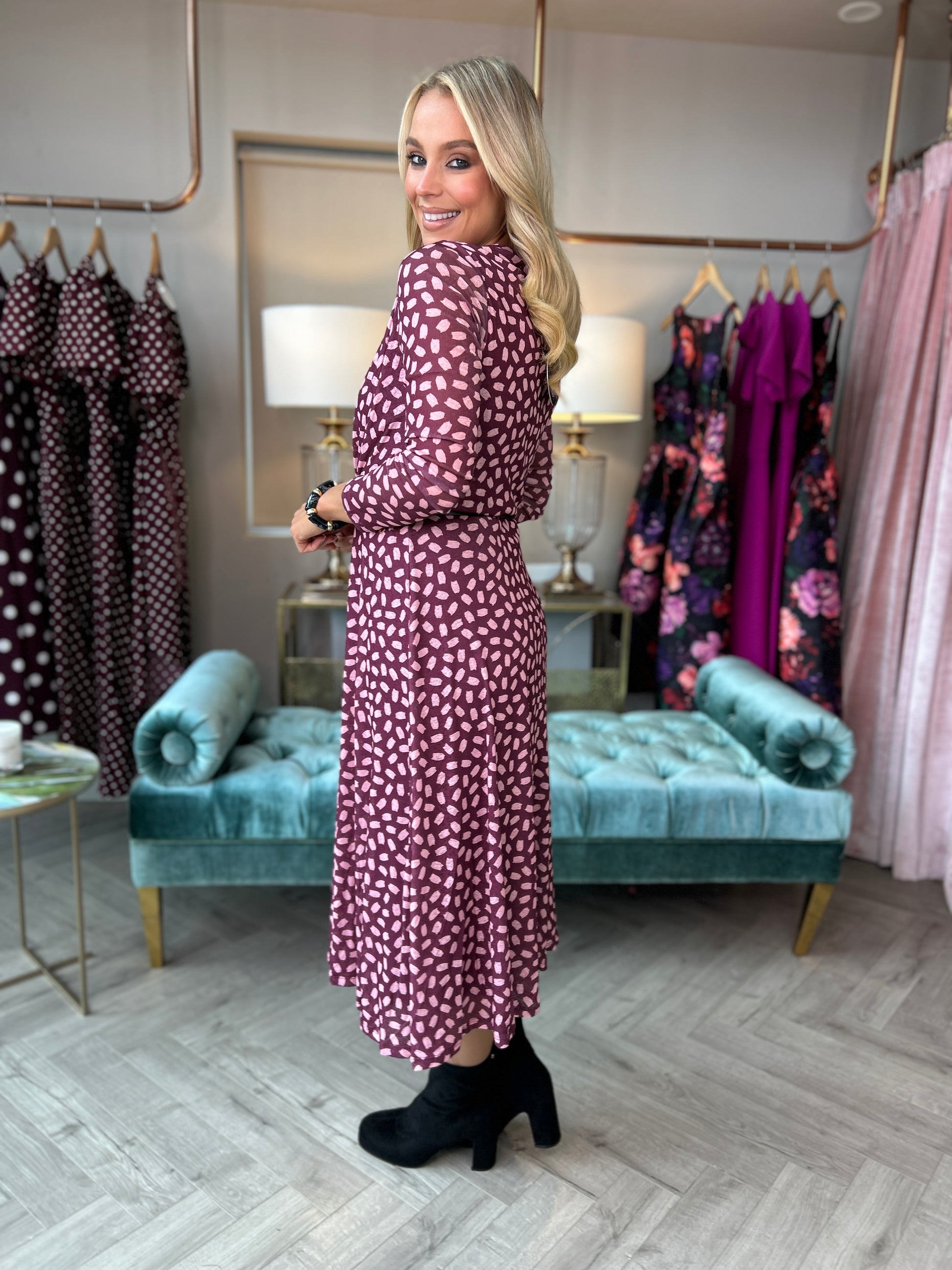 Elevate your wardrobe with the Rant & Rave Henrietta Dress in Pink, a timeless piece designed to flatter and enhance your silhouette. Crafted from soft, breathable fabric, it feels as comfortable as it looks, making it perfect for everything from casual outings to elegant evenings.