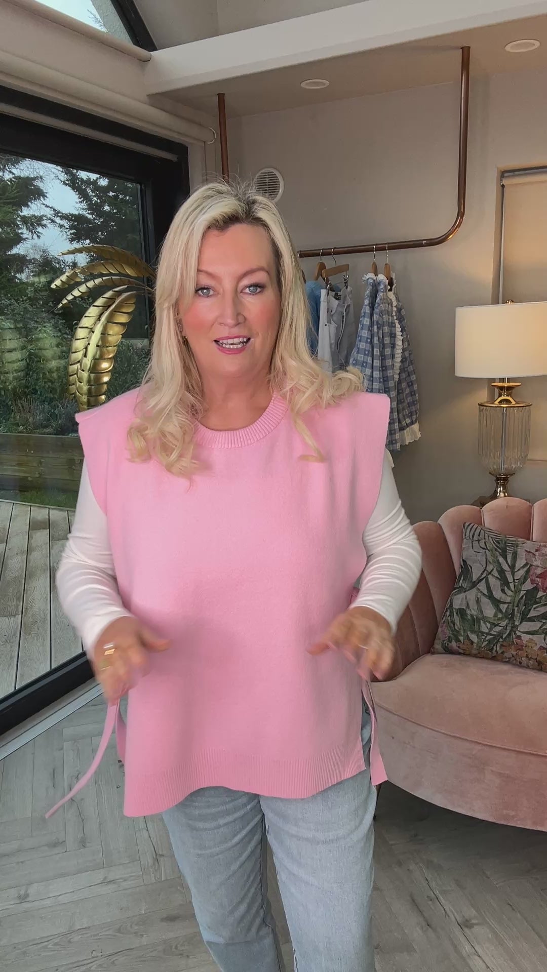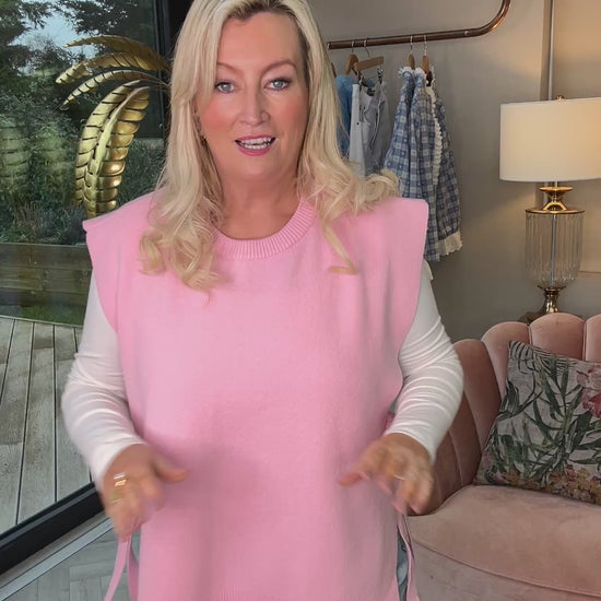 The beauty of the Remi Pink Tie Tank lies in its versatility. Effortlessly layer it over your favourite shirts, polo necks, or basic tops for an instant uplift to your ensemble. Whether you're heading to the office or enjoying a casual day out, this jumper adds a sophisticated layer that's both comfortable and chic.
