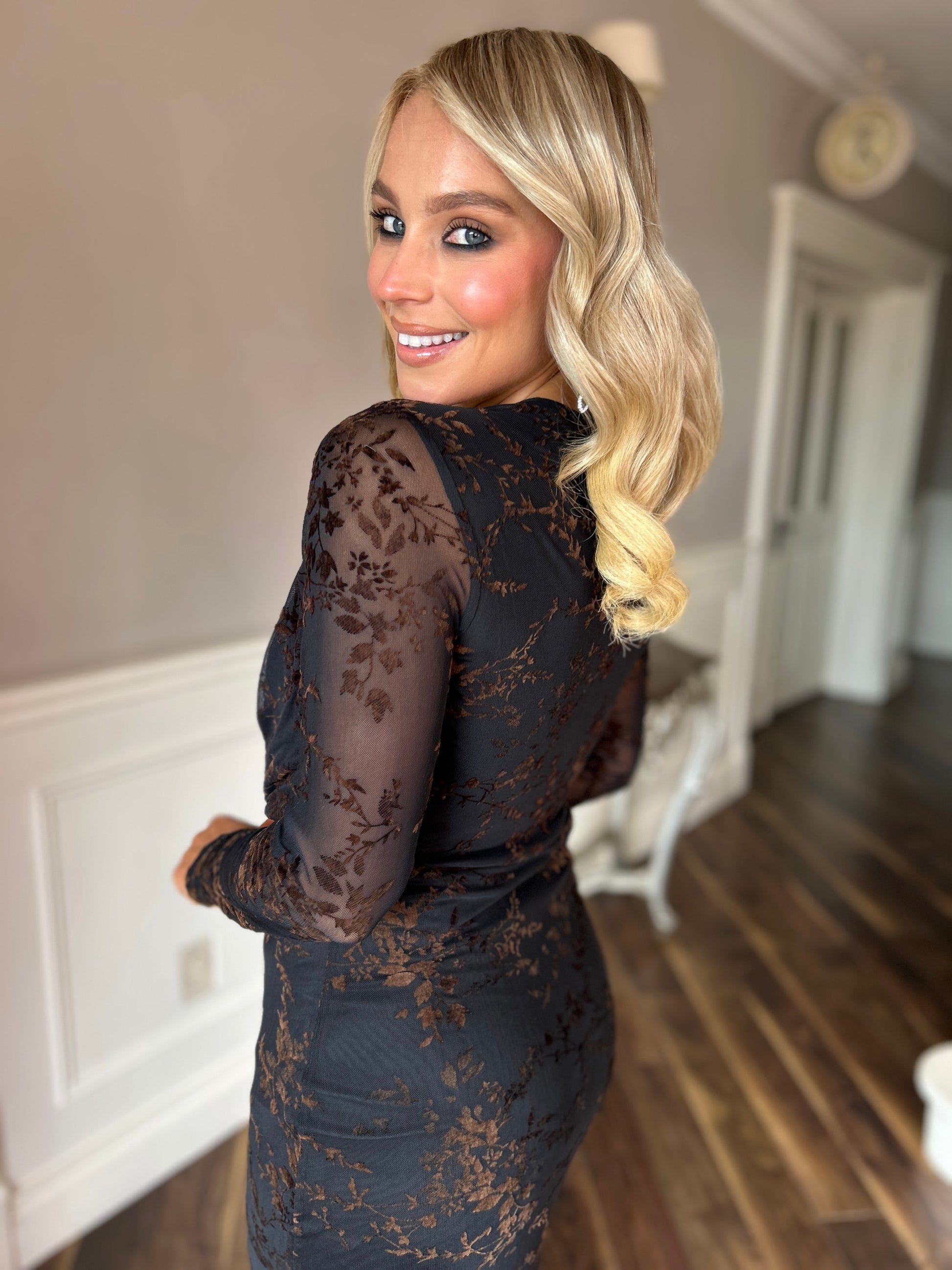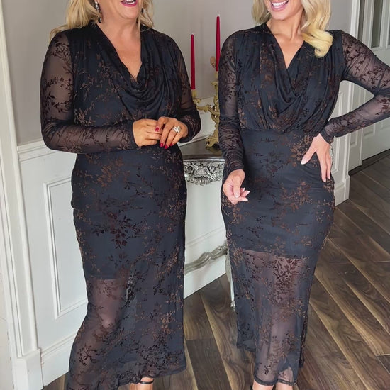 Elevate your wardrobe with the Remington Dress in elegant black. Featuring a draped neckline and delicate sheer lace sleeves, this dress combines refined style with subtle allure. The partial lining ensures comfort without compromising its graceful design. At €69, it’s a sophisticated choice for any special occasion.