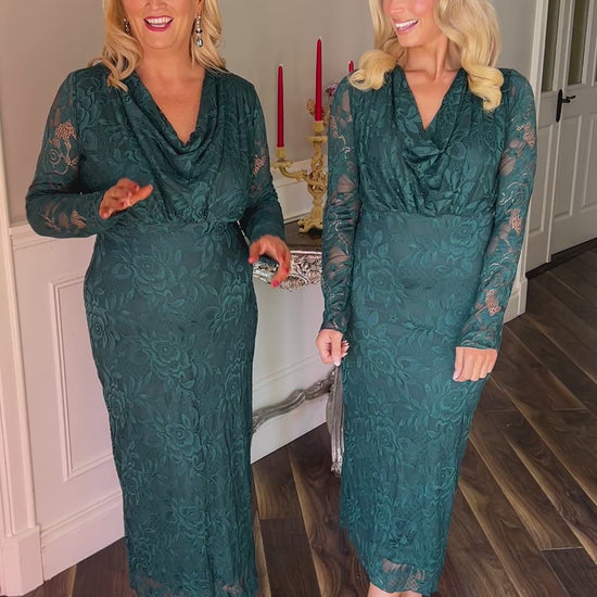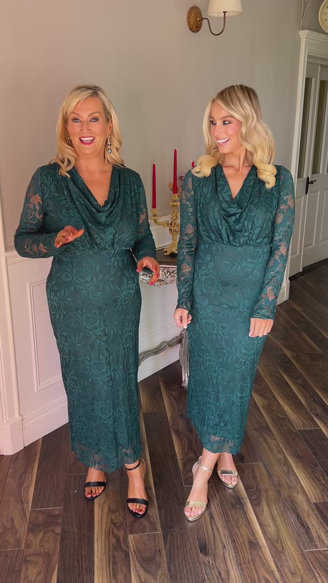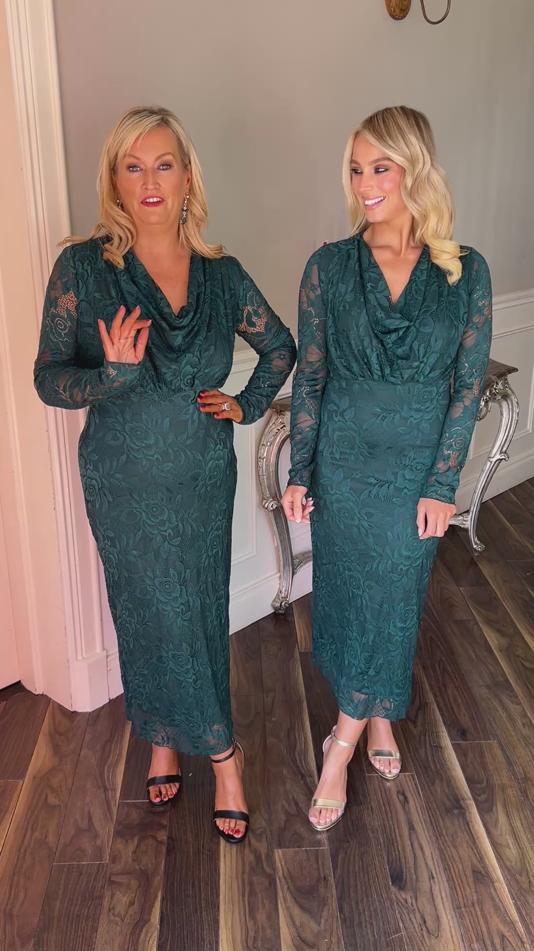 Elevate your wardrobe with the Remington Lace Dress in elegant green. Featuring a draped neckline and delicate sheer lace sleeves, this dress combines refined style with subtle allure. The partial lining ensures comfort without compromising its graceful design. At €69, it’s a sophisticated choice for any special occasion.