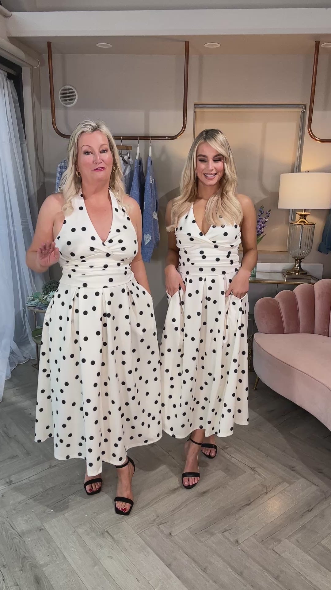 This dress is a celebration of playful sophistication. Featuring a captivating halter neck design that adds an elegant touch to your neckline, it's made for moments when you want to stand out. The dress cascades into a flattering A-line skirt, promising to swish and sway with every step you take. And yes, it comes with pockets - the perfect hideaway for your essentials.