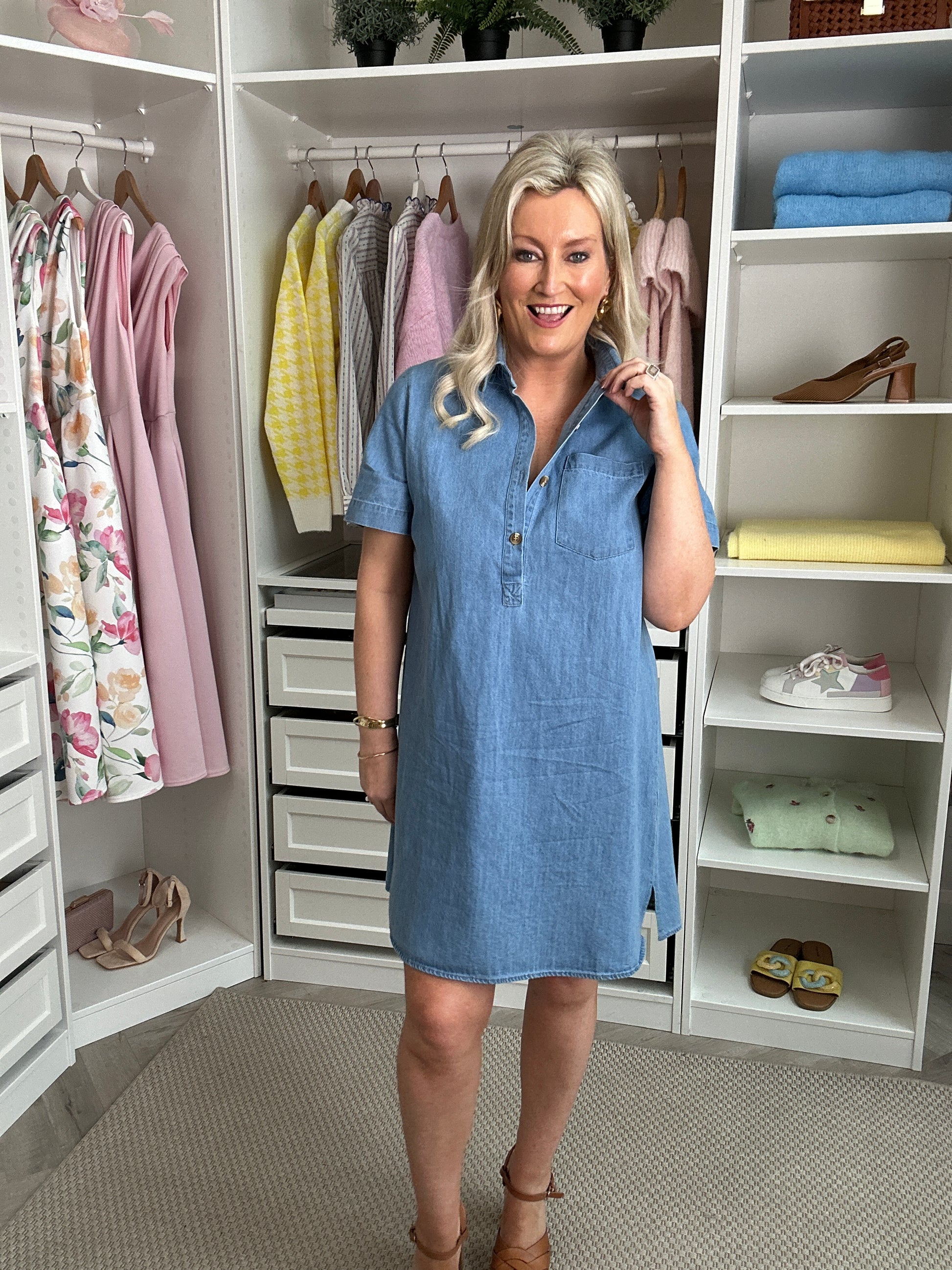 Introducing the Jenna Denim Dress. Perfect for the transition into the new season, pair it with tights and boots for a cozy, winter-ready look, or transition effortlessly into summer by swapping in some tan sandals for a lighter, breezy look. Its cute tunic silhouette promises to flatter any body type, making it a beloved addition to your wardrobe transitioning from one season to another. Denim notes are a big part of Spring 26!