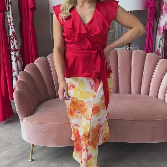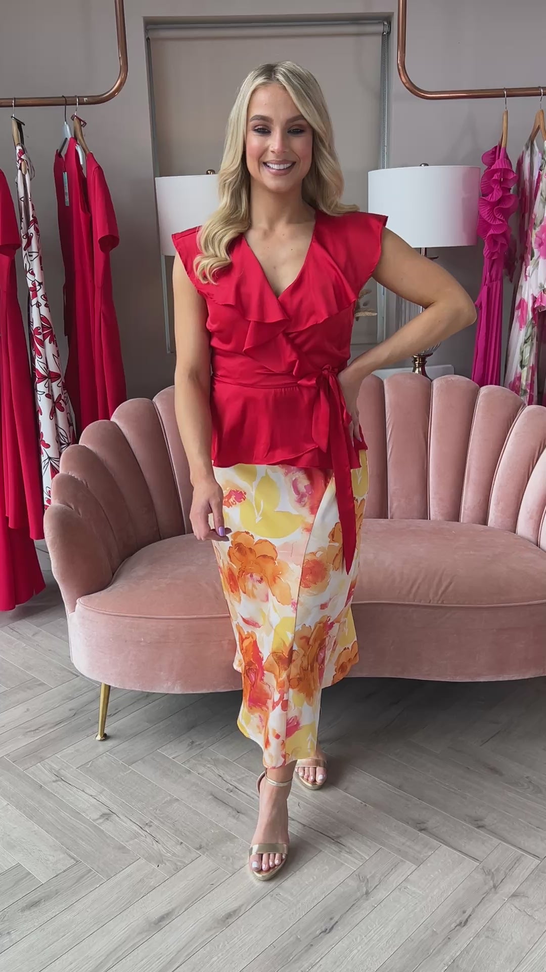 Add a touch of playful polish to your wardrobe with the Vikki Top — a full wrap silhouette that flatters in all the right places. Crafted from smooth satin with a soft sheen, this piece combines romantic frill edging with timeless romantic red for a look that’s equal parts feminine and sophisticated.