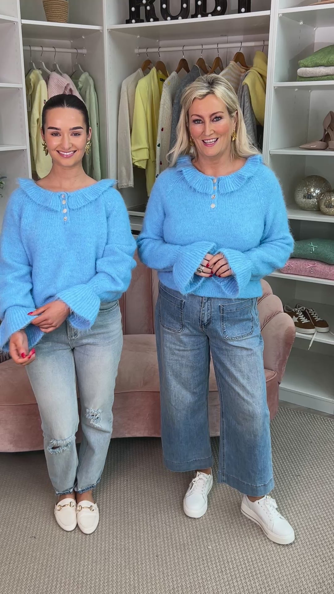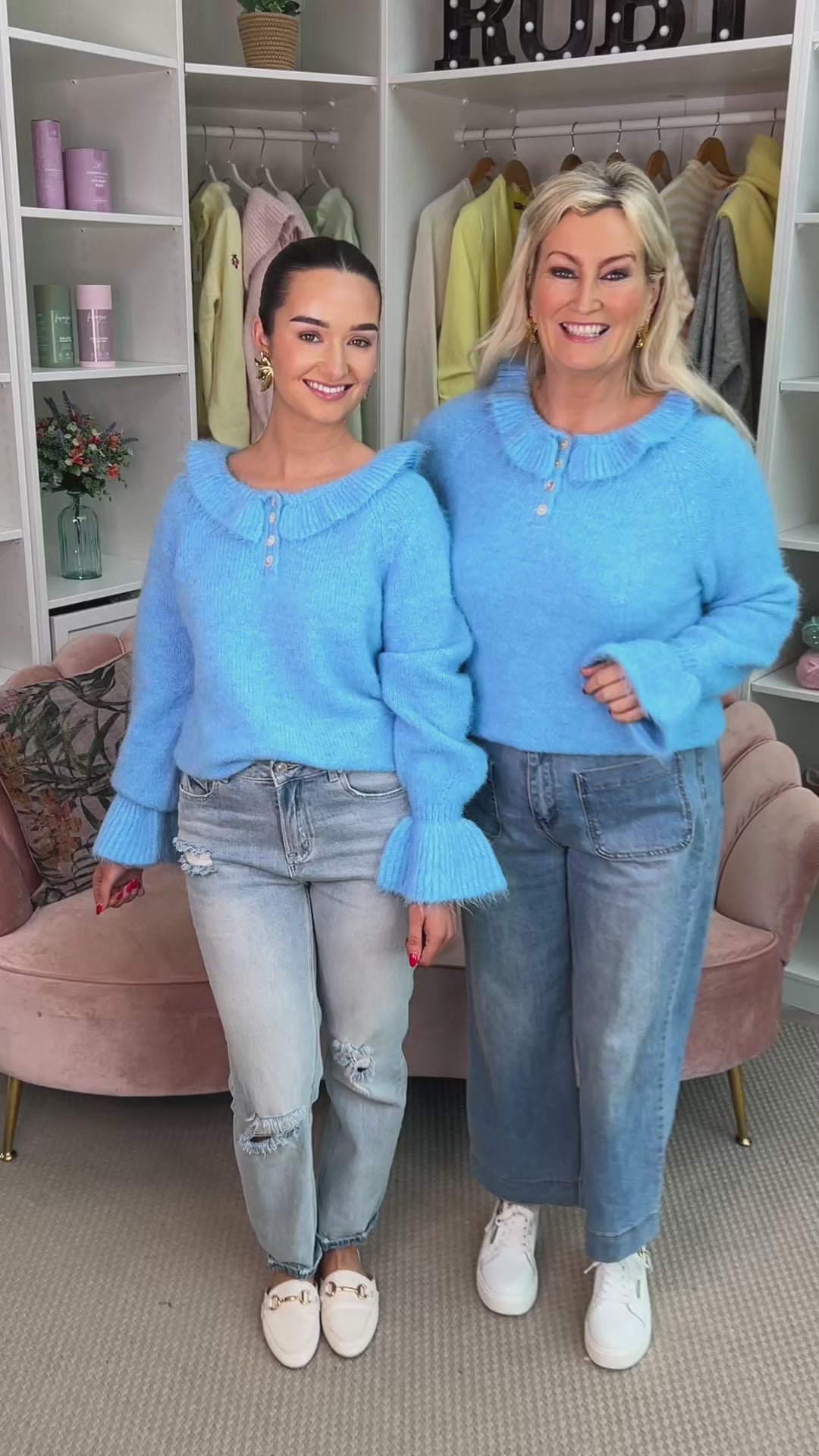 We adore the Anais Blue Ruffle Jumper – a versatile and charming piece that promises to become a cherished addition to your wardrobe. Crafted with meticulous attention to detail, this exquisite knitwear features delicate ruffle adorning the neck and sleeves, adding a playful yet sophisticated touch to your ensemble. The soft, high-quality fabric ensures comfort and warmth, making it an ideal choice for those crisp autumn days or cool evenings.
