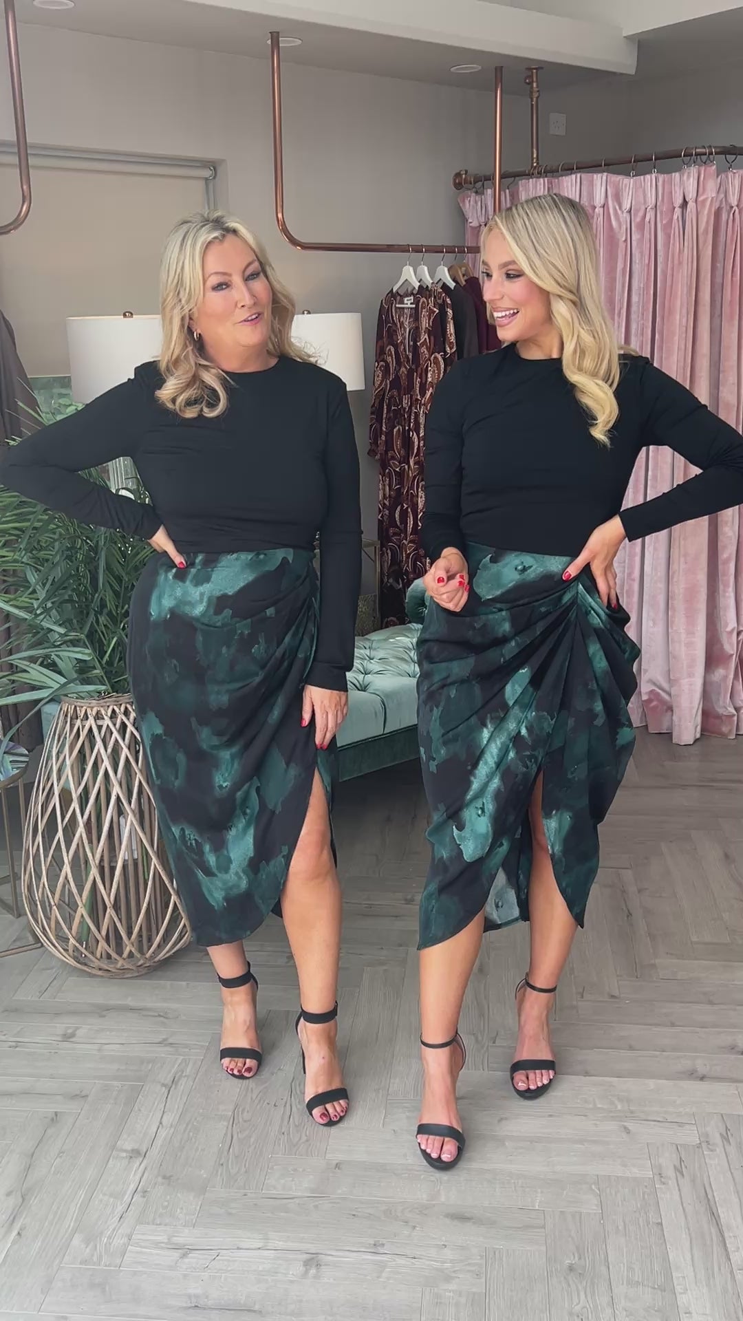 Both models are 5'5 in height. Niamh wears size uk size 14 here. Chloe wears her usual UK10.