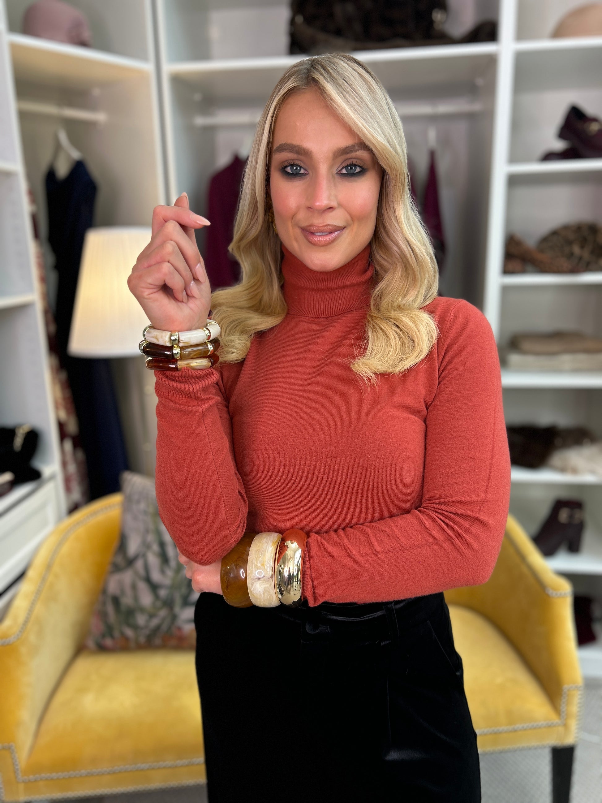 Elevate your style with the Autumn Bangle Set, featuring three wide bracelets that blend colorful resin and golden metal for a refined, contemporary appeal. Each bangle showcases a distinct texture—from creamy translucent to warm amber and lustrous gold—offering an artistic layered effect. Perfect for adding a touch of elegance to your autumn wardrobe, these comfortable bangles bring sophisticated character and modern flair to any look.