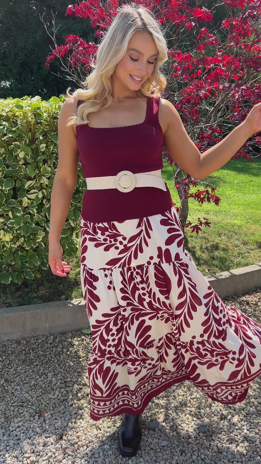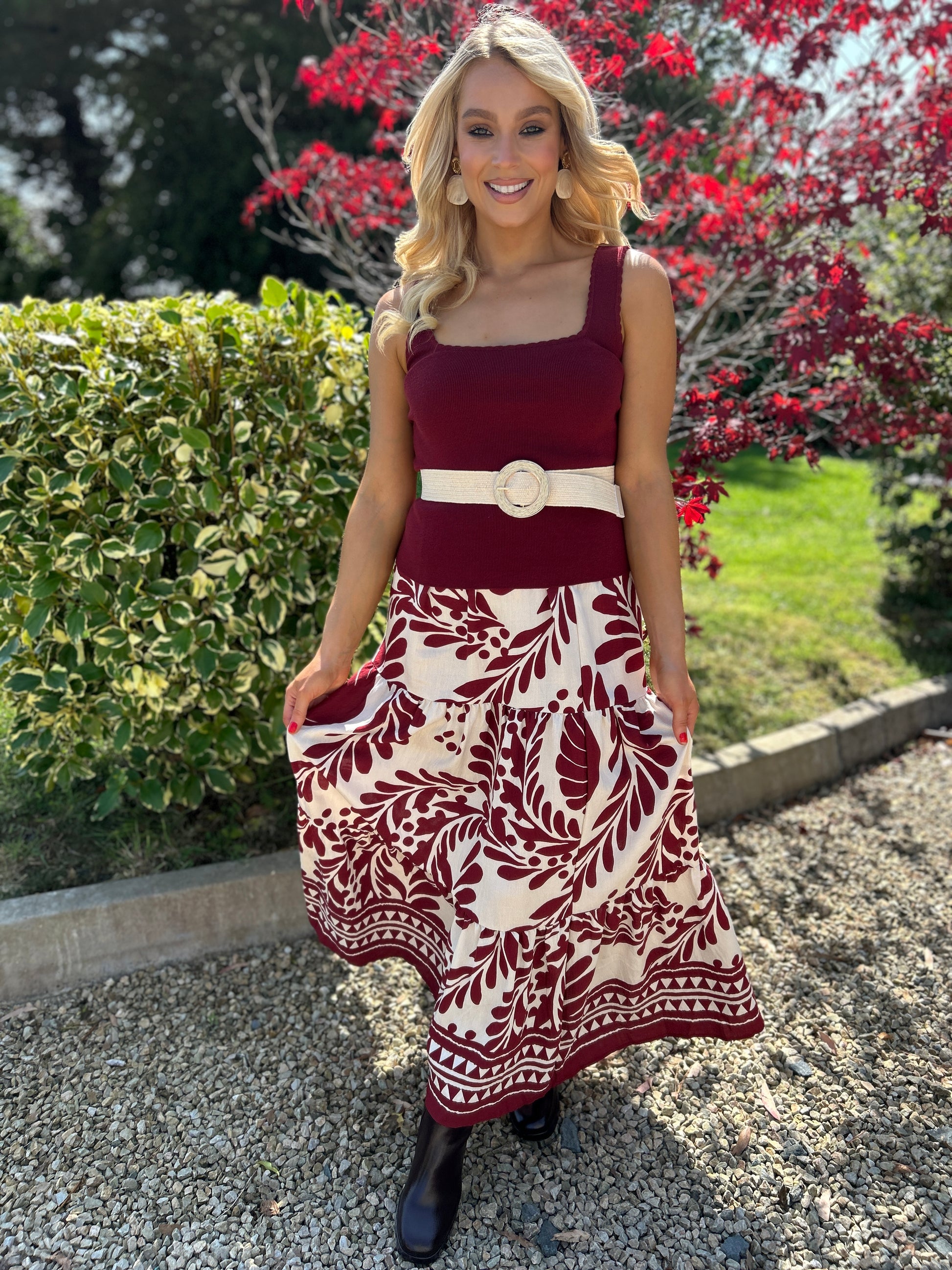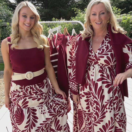🌺 Bold leaf print in rich burgundy tones