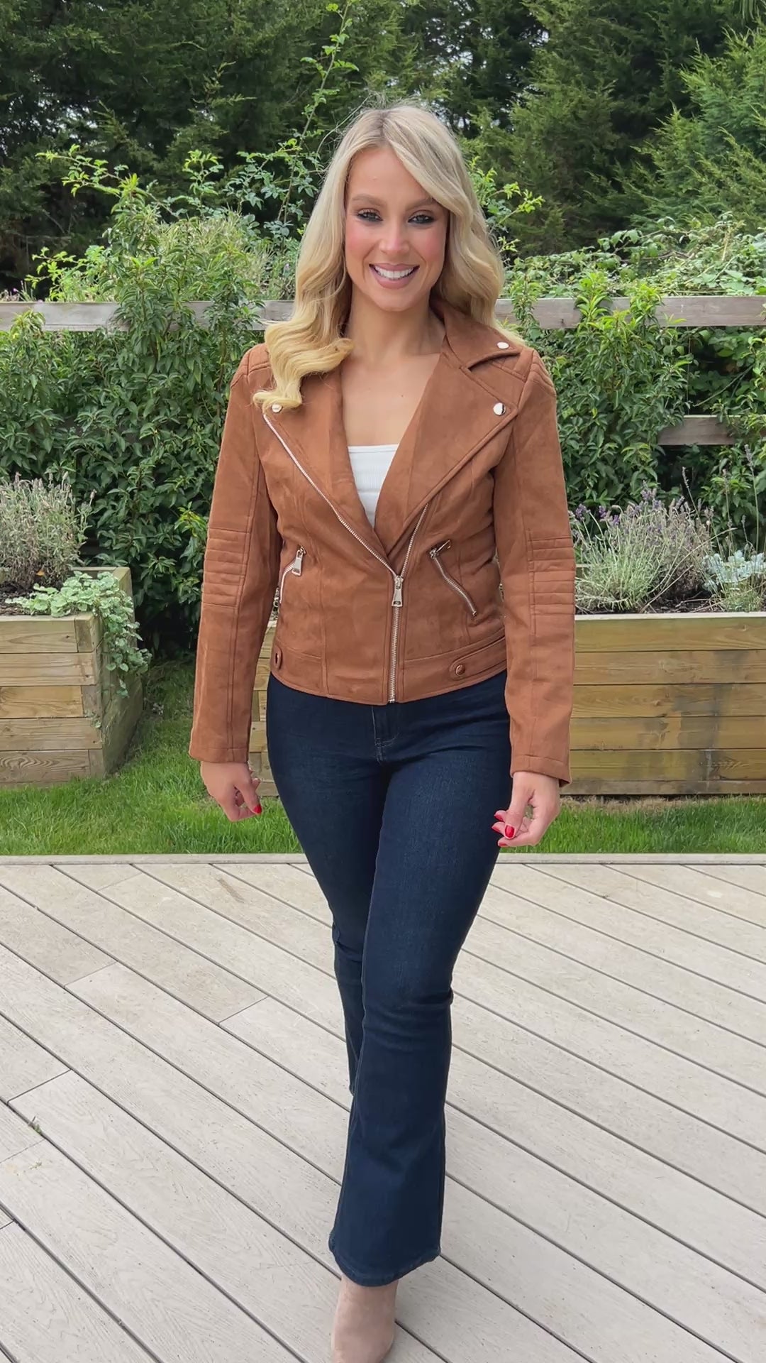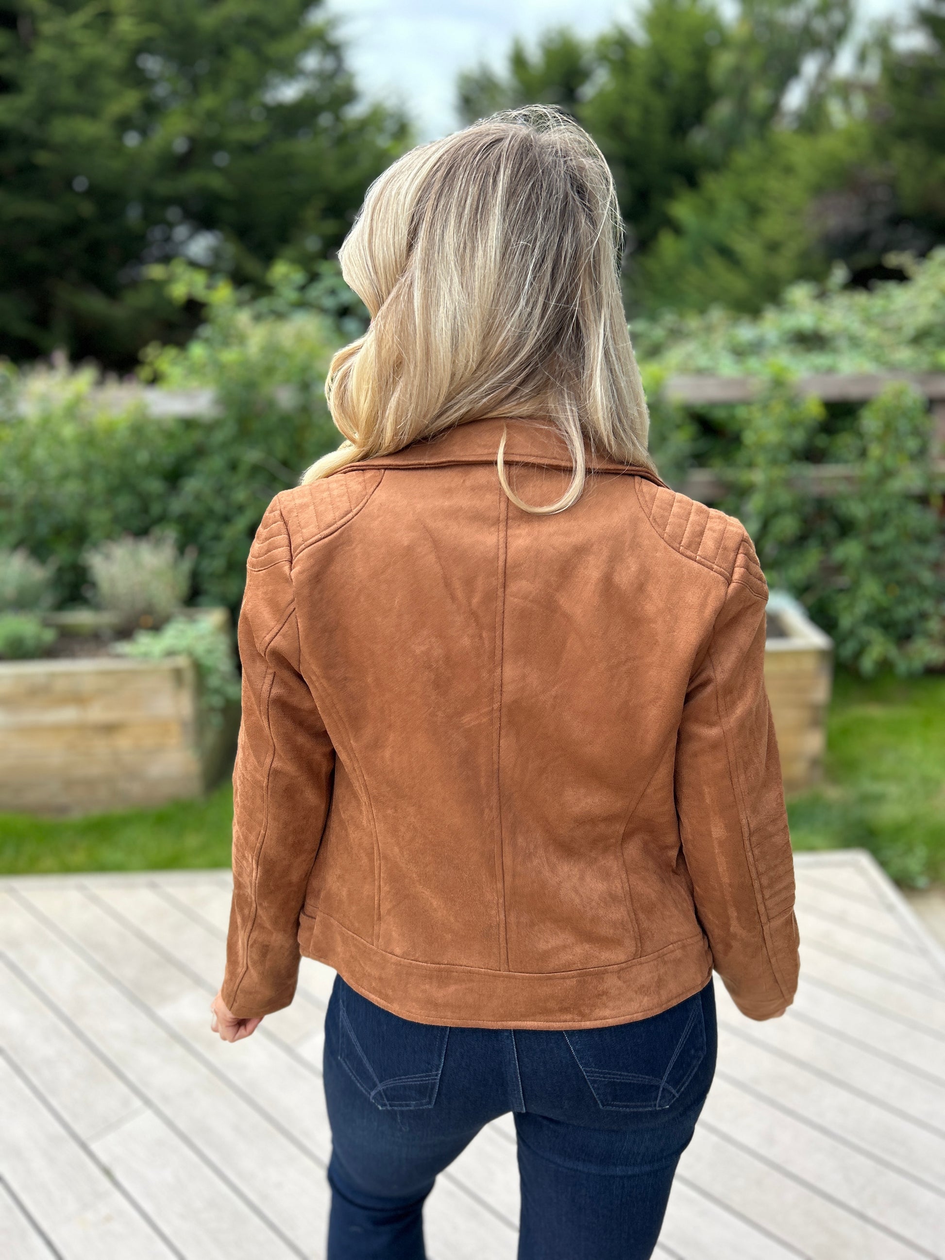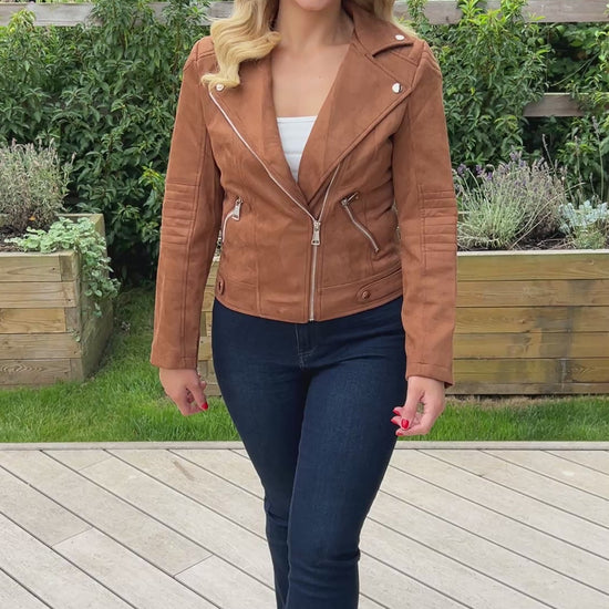A timeless wardrobe staple with a modern edge, the Brandi Suede Biker Jacket is crafted from soft faux suede for a luxe feel and comfortable fit. Designed with classic biker details, it features an asymmetric zip front, structured lapels, and tailored seams that flatter every silhouette.