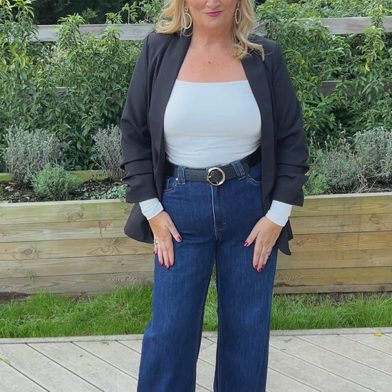 Crafted from premium stretch denim in a rich dark indigo wash, they combine comfort with effortless style, making them a true wardrobe staple. Pair with a blouse and heels for elevated evenings or keep it casual with trainers and a tee for relaxed, everyday chic.
