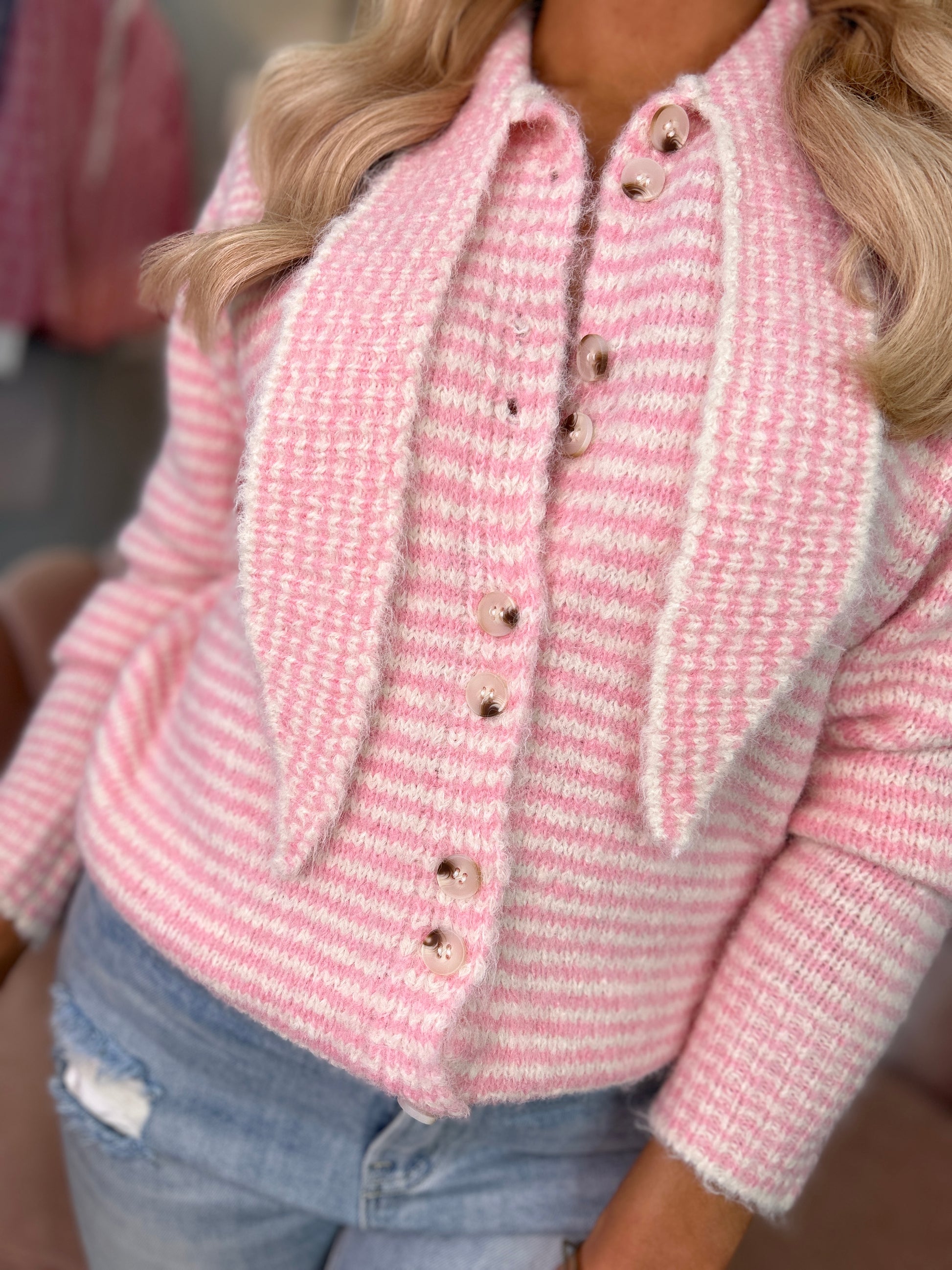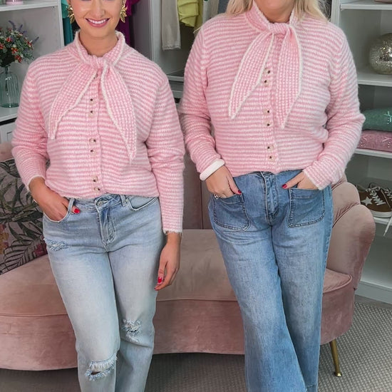 We adore the Candy Pink Jumper a delightful addition to your knitwear collection. Priced at €49.00, this soft pink jumper features a unique tie neck detail that sets it apart. It promises to keep you cozy and comfortable while adding a pop of color to your wardrobe.