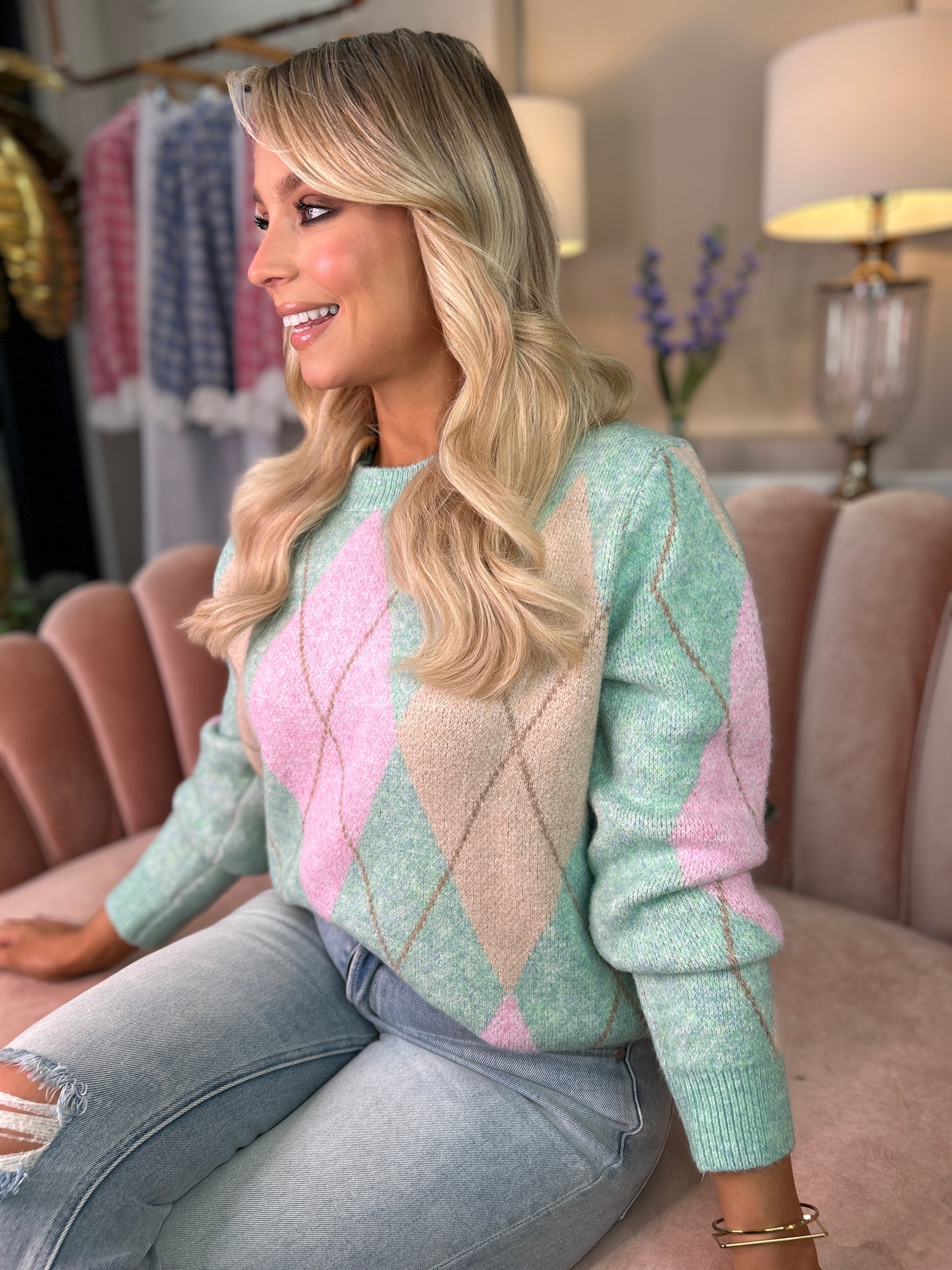 The Cleo Jumper effortlessly pairs with your favorite jeans for a relaxed, yet chic look. Its versatile design ensures it will become a go-to piece in your wardrobe. With its eye-catching colors the Cleo Jumper is sure to become a firm favorite, offering both style and warmth as you step into the spring season.
