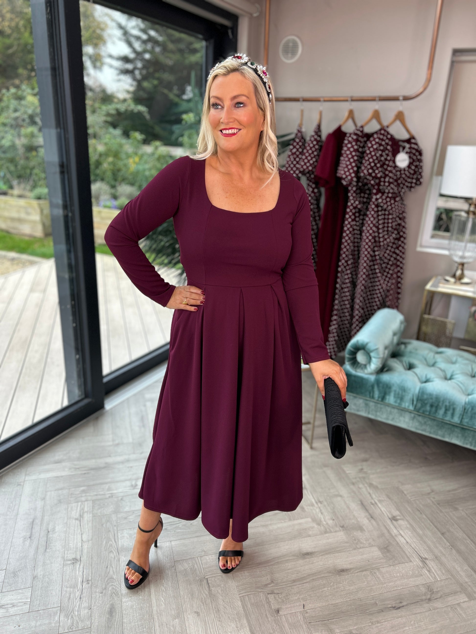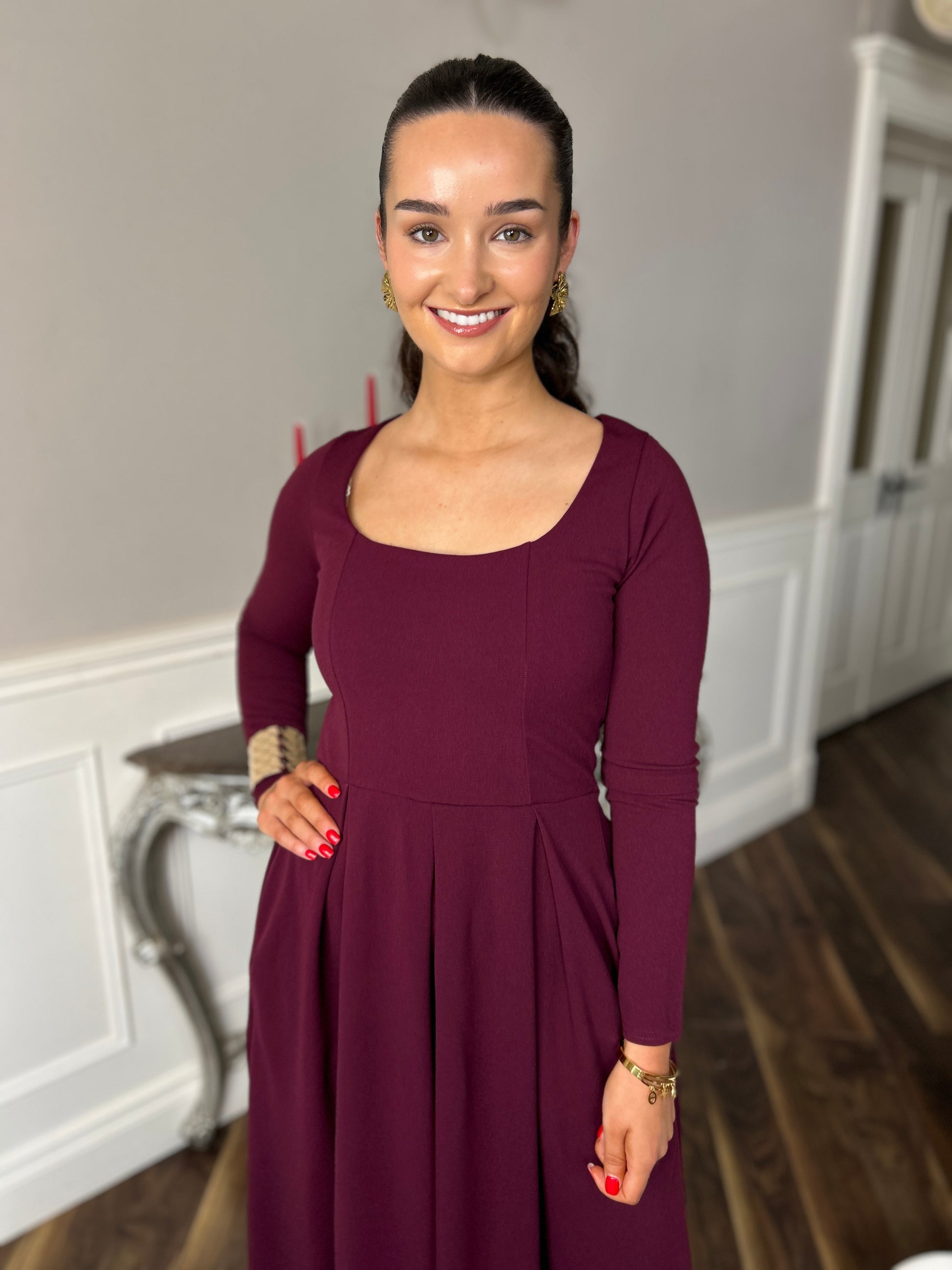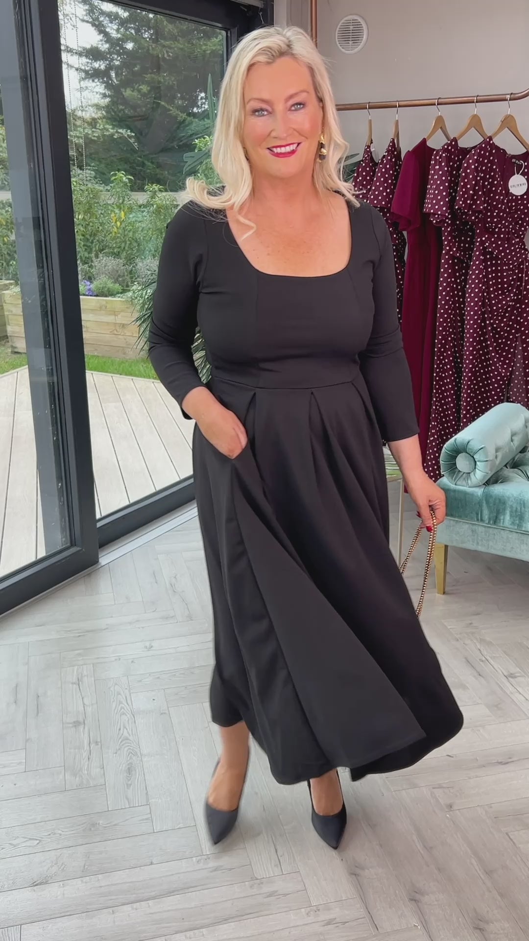 Timeless elegance meets modern femininity in the Evie Dress. Designed with a flattering A-line silhouette, this piece features a pleated skirt that moves beautifully and a soft scoop neckline for a touch of sophistication.
