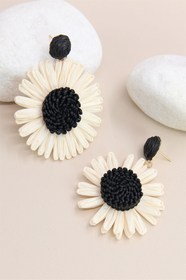 Elevate your summer look with our Isla Earrings Ecru! These raffia straw earrings feature charming flower details for a touch of feminine elegance. Get ready to embrace the warm weather with these statement earrings that exude summer vibes.