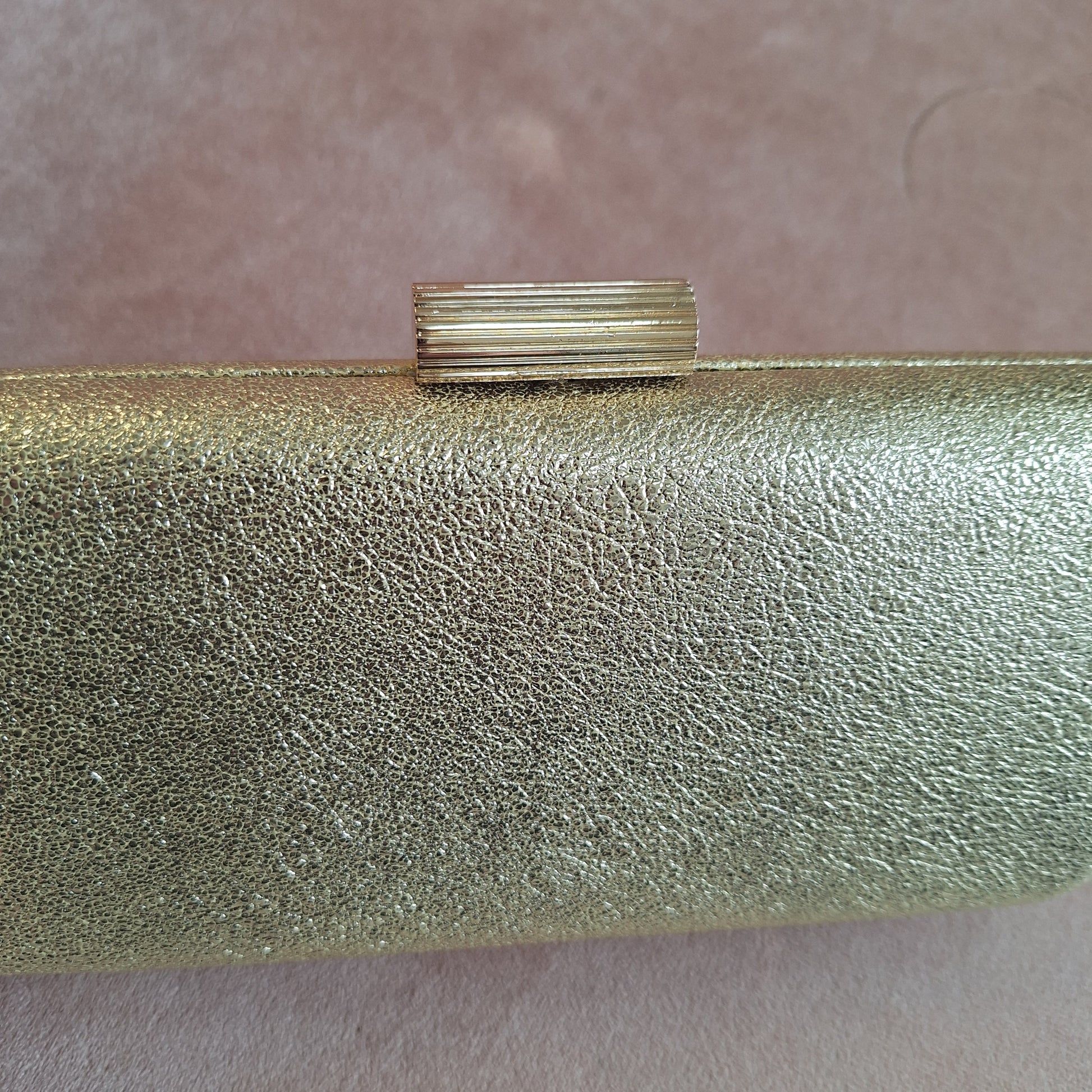Shine bright with the Oria Gold Clutch! This trendy clutch features a chic gold fastening and a convenient crossbody strap for hands-free style. Elevate any outfit with this versatile and stylish accessory. Perfect for a night out or special occasion.