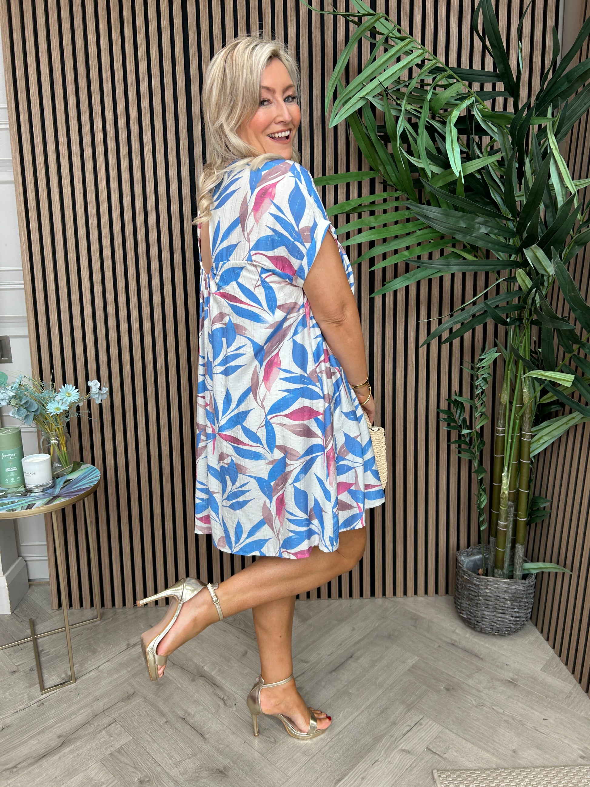 We adore the Riley Blue Dress a marvel in contemporary chic that brings a breath of fresh air to your wardrobe. This shift style, adorned in a captivating blend of blue, rose pink, and taupe, features tasteful capped sleeves, offering an epitome of elegance and comfort. Crafted with an eye for detail, it has a really clever lining with built in shorts.