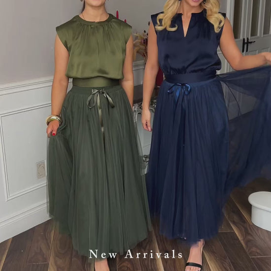 Featuring a subtle keyhole neckline, delicate shoulder pleats, and a fluid satin finish, this top is all about understated glamour. Whether paired with tailored trousers for an evening look or tucked into a statement skirt for party season, the Amelia brings instant polish and sophistication.